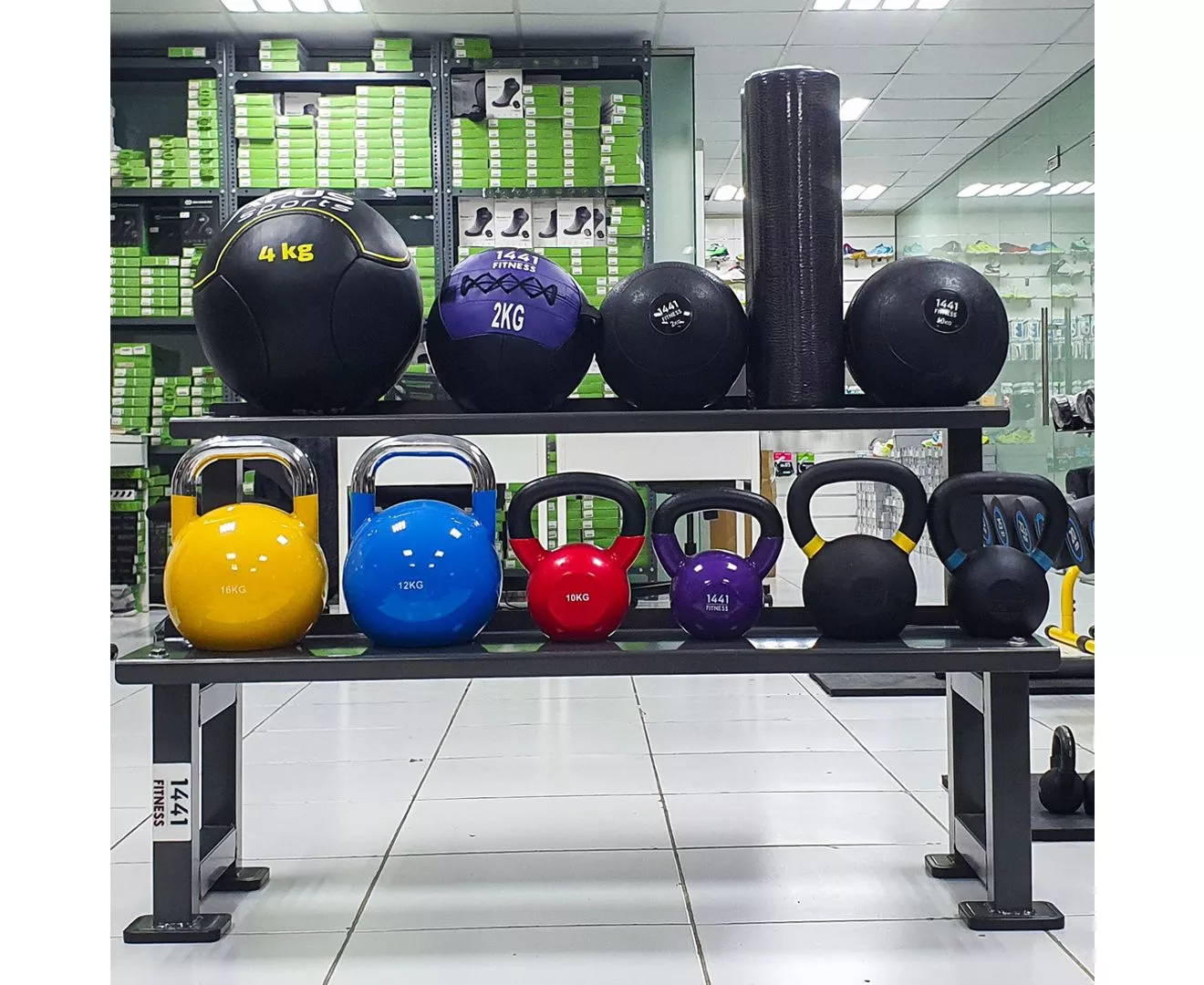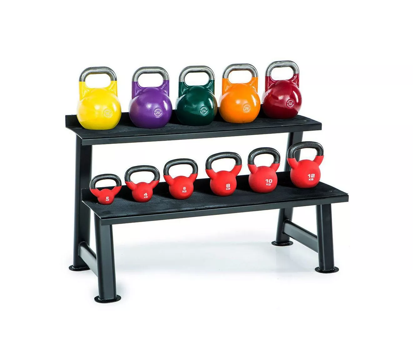 1441 Fitness 2-Tier Kettlebell Rack, Multilevel Storage Organizer Stand for up to 15 Kettle Bell Set Home & Gym Equipment Accessories, (Black) . This 1441 Fitness 2 Tier Kettlebell Rack for 10 - 15 kettlebell set will look great in any home or commercial gym. This kettle weight rack stand is made of high-quality materials for added strength and longevity. This rack will allow you to safely and conveniently store your dumbbells. It has enough space to store up to 15 pairs of dumbbells depending upon the size, making it easier for you to stay organised in your workspace this storage rack allows you to quickly distinguish between different weights. It has robust pipes and can support maximum weights. It's also small, so you may put it against the wall or in the middle of the room.