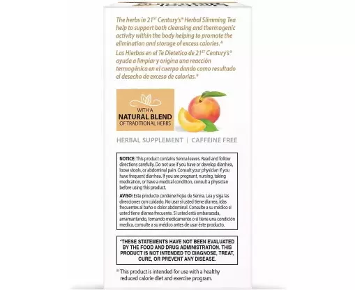 The herbs in 21st Century's® Herbal Slimming Tea help to support both cleansing and thermogenic activity within the body helping to promote the elimination and storage of excess calories.