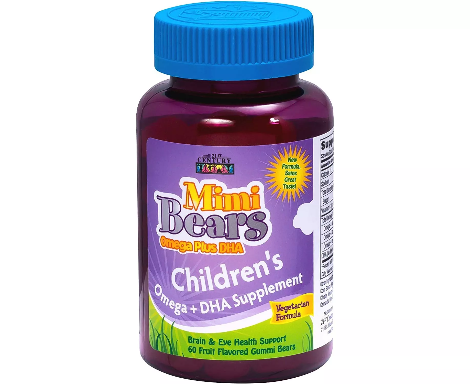 21st Century Mimi Bears Omega plus DHA Multi-Vitamins Gummies supports brain, heart and eye health while providing plant-derived essential fatty acids with no fishy aftertaste. These bear-shaped gummies with naturally sourced fruit flavors taste great too. Parents, you can be sure that your children are receiving valuable nutritional support with each daily serving of it.