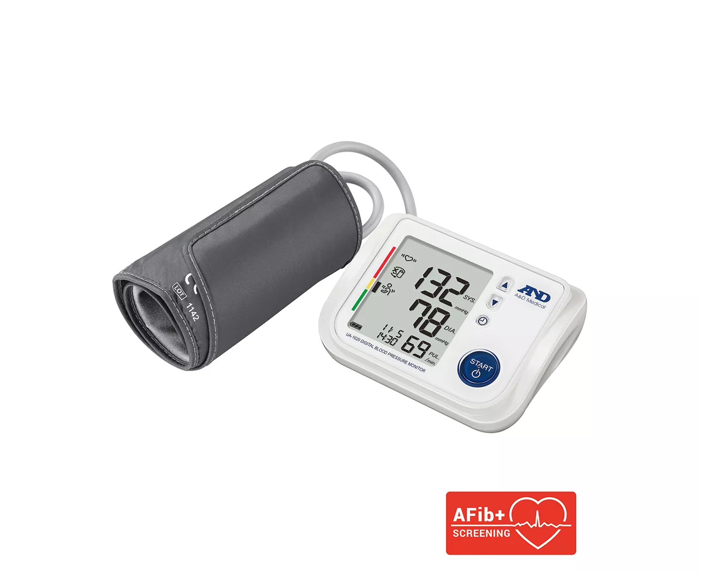 The UA-1020 Upper Arm Blood Pressure Monitor improves upon all of the innovations A&D Medical has created since we were founded back in 1977 and includes the ability to screen for AFib (Atrial Fibrillation) in a single measurement. Please refer to the clinical paper: Diagnostic accuracy of a new algorithm to detect atrial fibrillation in a home blood pressure monitor for further information.