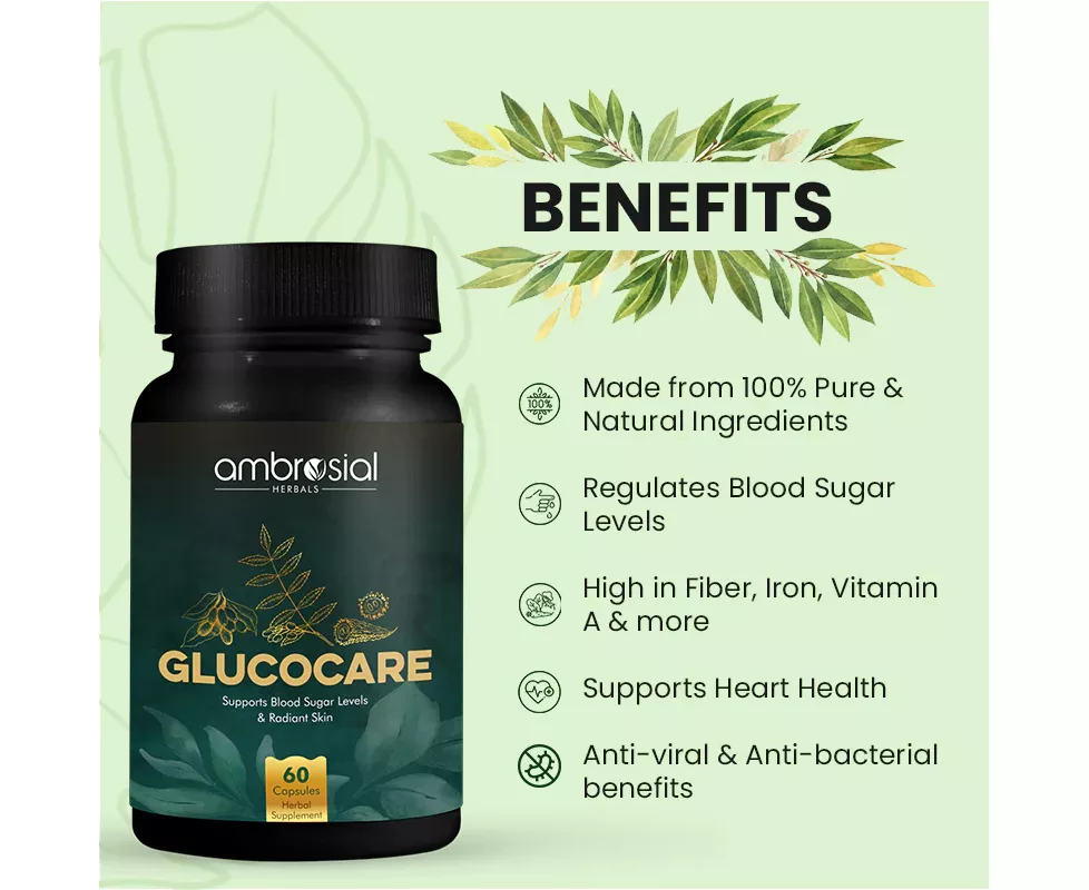 Bitter Gourd (Karela), Azadirachta Indica (Neem), and Blackberry are the three original herbs that makeup Ambrosial's Glucocare Capsules (Jamun). When it comes to health difficulties involving the body's blood sugar levels, Ambrosial's Glucocare Tablets may work great. The substances used are highly good for managing glucose levels in the blood; hence it's also known as diabetic care capsules. Glucocare is the best blood sugar support supplement to manage glucose levels..