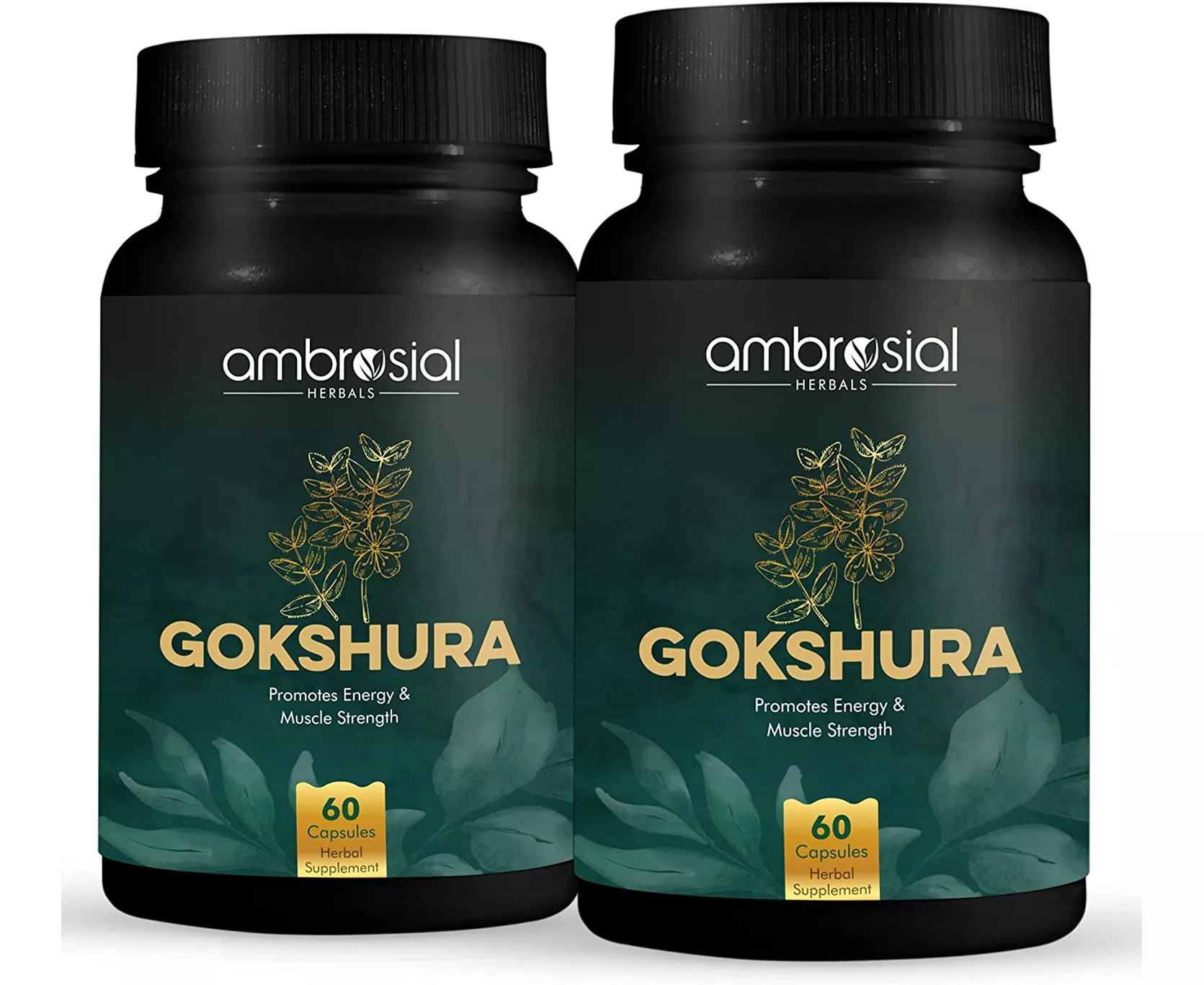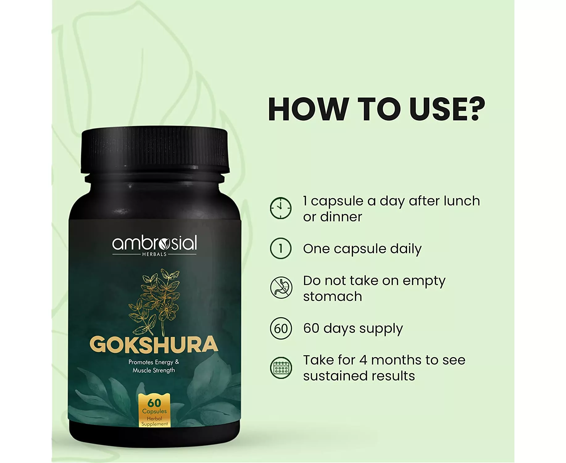 ✔️Ambrosial’s Gokshura 500 mg - 60 Veg Capsules ✔️It is herbal energy revitalization that increases stamina. ✔️Made from 100% pure & natural premium ingredients ✔️Benefits Hair fall, Neural Problems, Stress, Obesity, Menstruation, Piles, Bedwetting, and Eye problems.