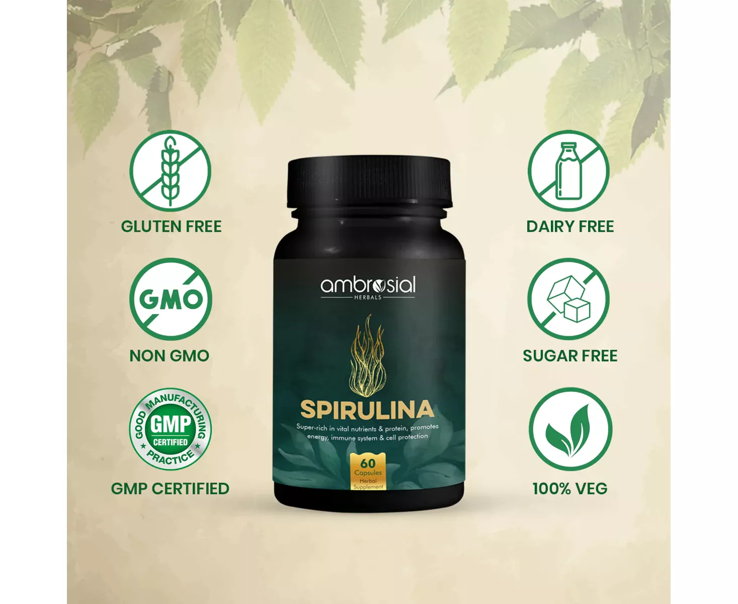 • Since Spirulina tablets are loaded with proteins & nutrients, it works as an energy booster & an excellent source of antioxidants which can protect against oxidative damage & also helps build your immunity.