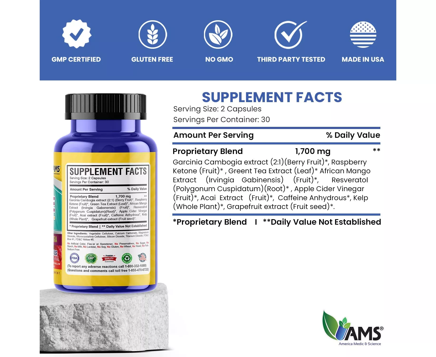 AMS Raspberry Ketone Lean With Garcinia Capsules 60's