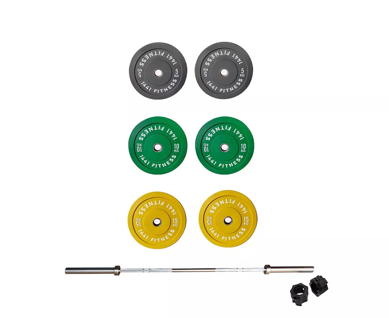The 1441 Fitness 80 Kg Olympic Rubber Bumper Plates with Barbell is designed to work out the whole body, from legs and back when squatting to arms and abdominal when performing chest press.