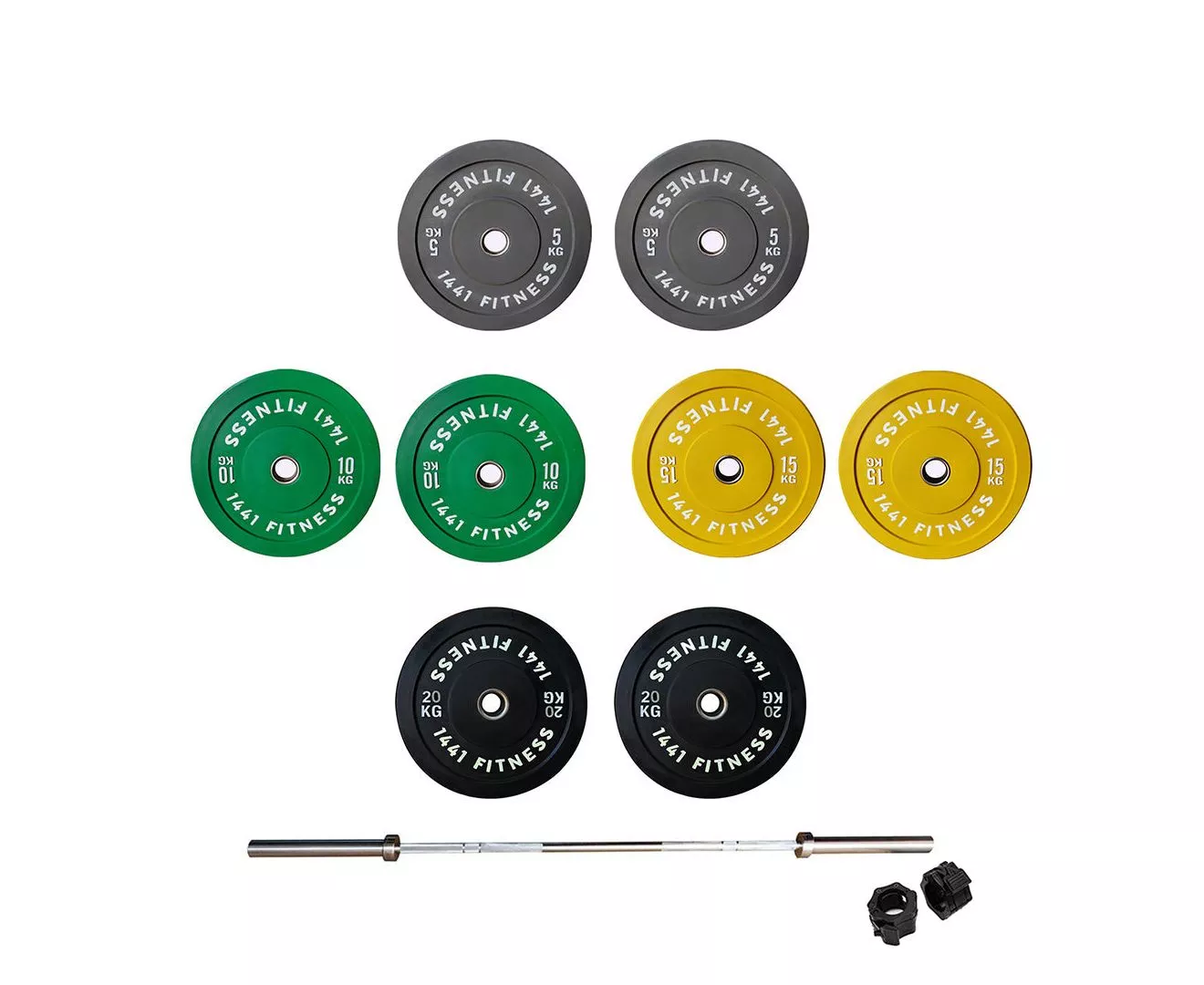 The 1441 Fitness 120 Kg Olympic Rubber Bumper Plates with Barbell is designed to work out the whole body, from legs and back when squatting to arms and abdominal when performing chest press.