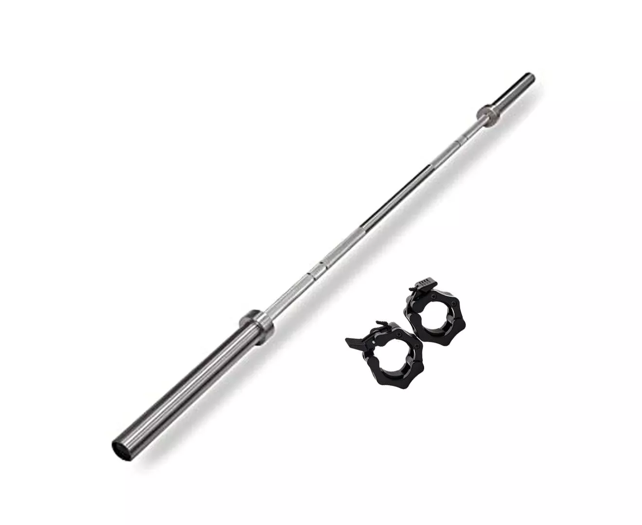 Starting building muscle strength now with this set of 7 ft. Olympic Bar with Collars. Now perform bicep curls, triceps extensions, chest press, shoulder press, upright rows for the upper body and much more at the convenience of your home with this Olympic weight bar. This barbell weight bar can be used for isolated upper and lower body strength training. A knurled handle allows for a secure grip and added efficiency without being sharp or painful. You could use it with or without weights. This heavy-duty squat bar could help you check your form in various exercises rather than at the gym. The weighted bar uses with spring collars (included) to secure weight plates in place.