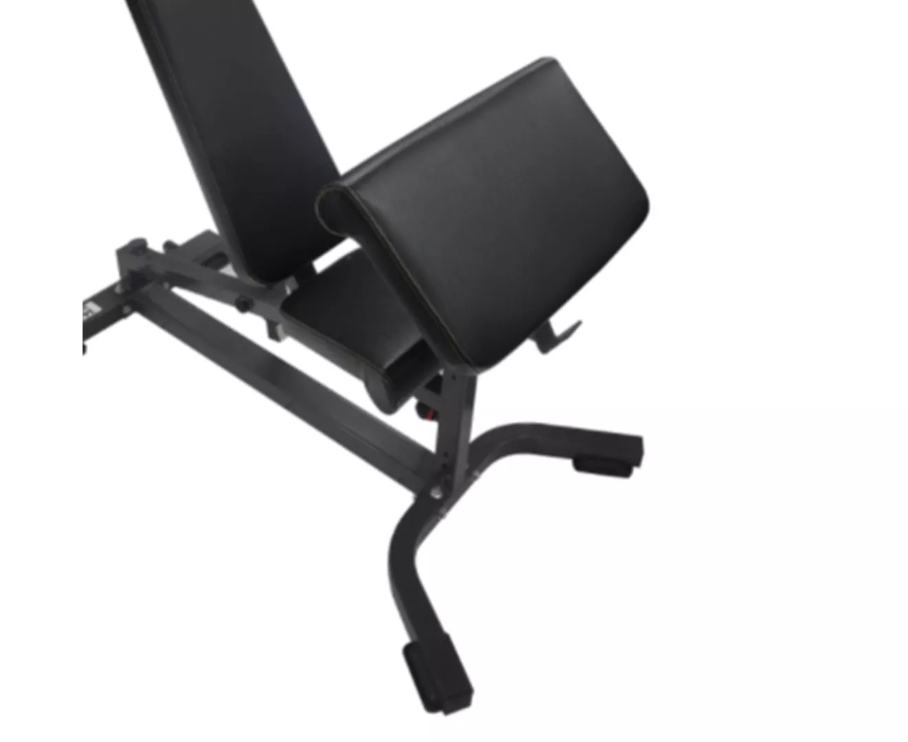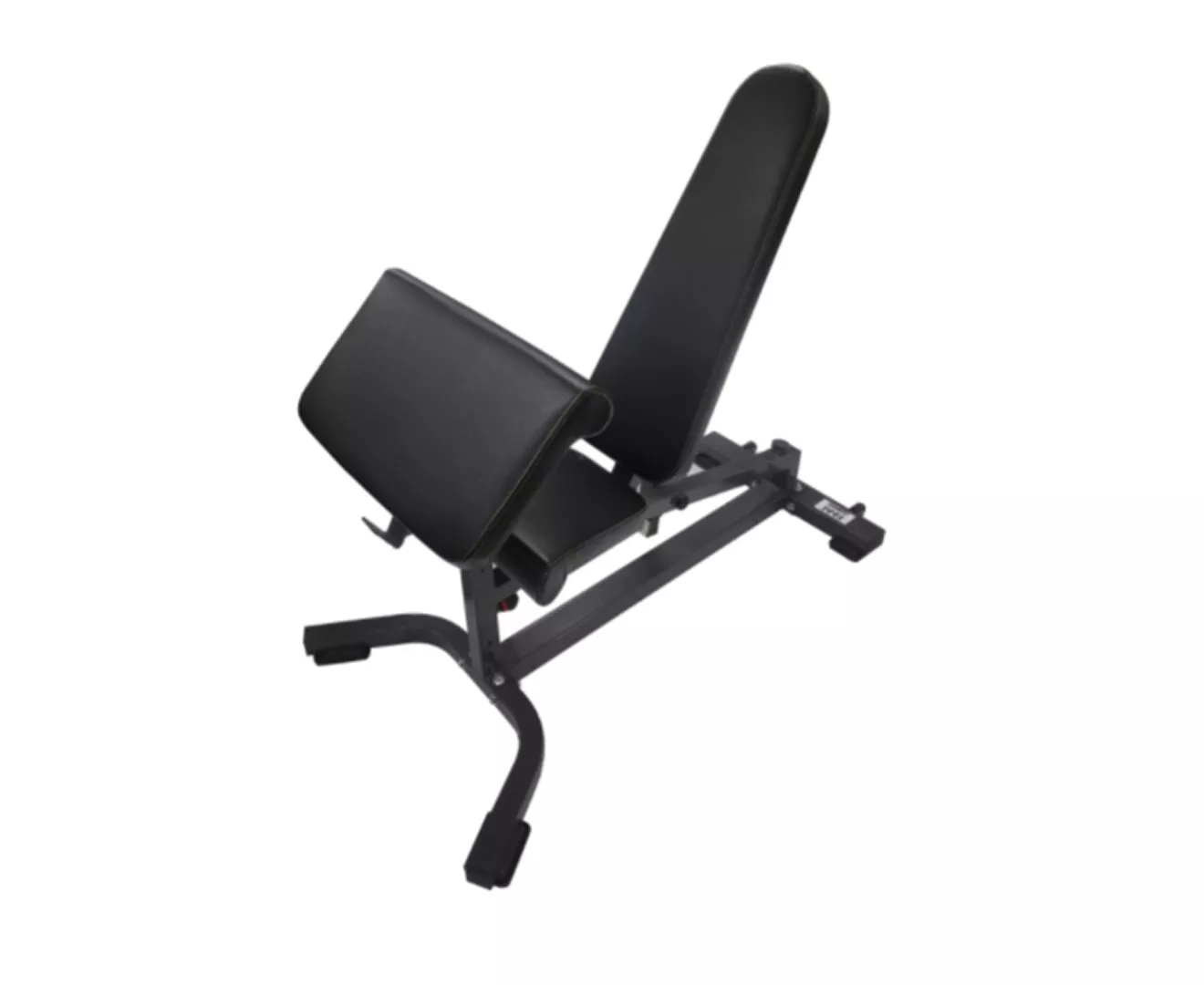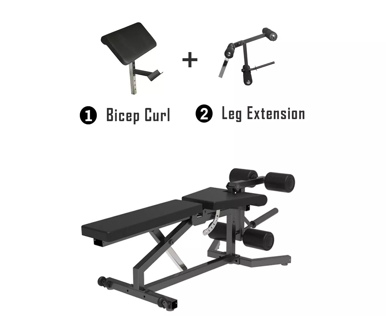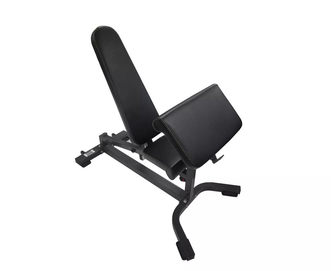 1441 Fitness Commercial Bench adjusts quickly and easily from Flat to Incline to Decline thanks to our laser cut, shark tooth design. Plus it includes a separate leg developer and height-adjustable preacher curl attachment for greater versatility in your workouts!