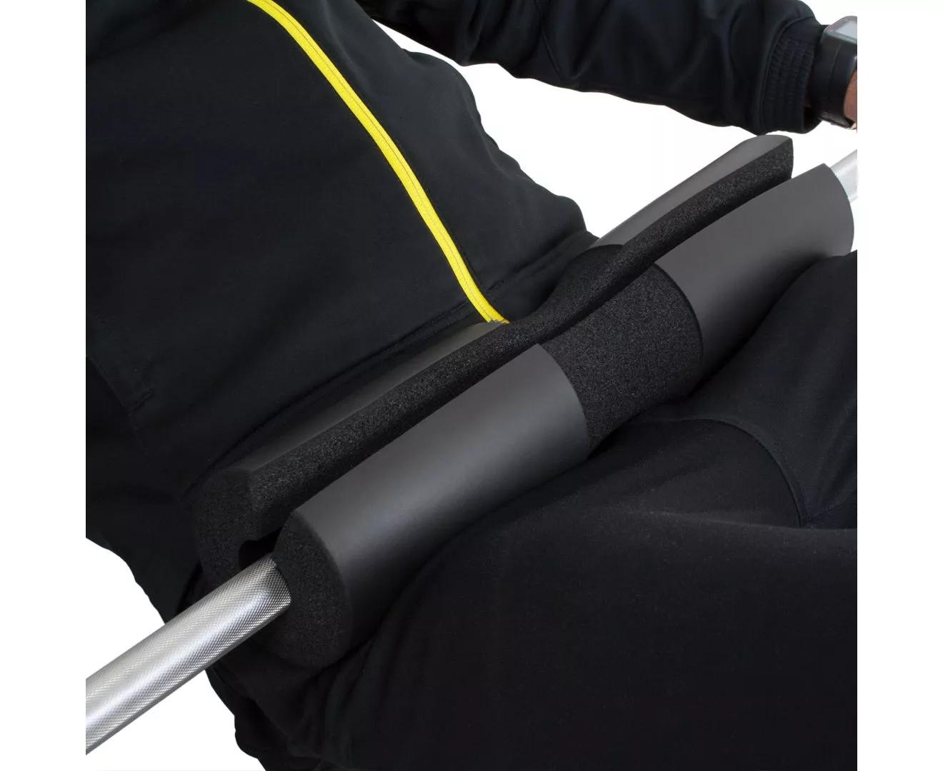 1441 Fitness Barbell Squat Pad for Squats, Lunges & Hip Thrusts - Neck & Shoulder Protective Pad Support Foam Sponge Pad for Standard and Olympic Bars Provides Relief to Shoulder While Training - Black. The 1441 Fitness Back Squat Pad is a useful piece of fitness equipment. It's comprised of thick foam cushioning that protects your shoulders, spine, neck, hips, and back while you're having a good time with your legs. This barbell pad features a unique cut-away design that makes it simple to install and remove from the barbell. However, this padding remains firmly attached to the barbell, preventing any movement, and with the help of this squat bar pad, you will be able to avoid unnecessary pressure on your back and concentrate solely on your workout. The foam squat pad also ensures a secure grasp on the barbell, preventing you from slipping or tipping away throughout your workout. 1441 Fitness squat pad is an ergonomic pole pad that absorbs shock and vibration, ensuring appropriate weight distribution on the shoulders, giving comfort, decreasing discomfort and tension, and allowing you to push your training boundaries safely and comfortably. The non-absorbent surface increases comfort and durability by not absorbing sweat or unpleasant odours.