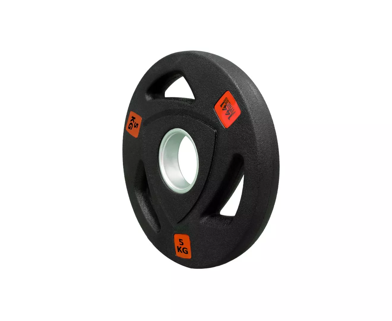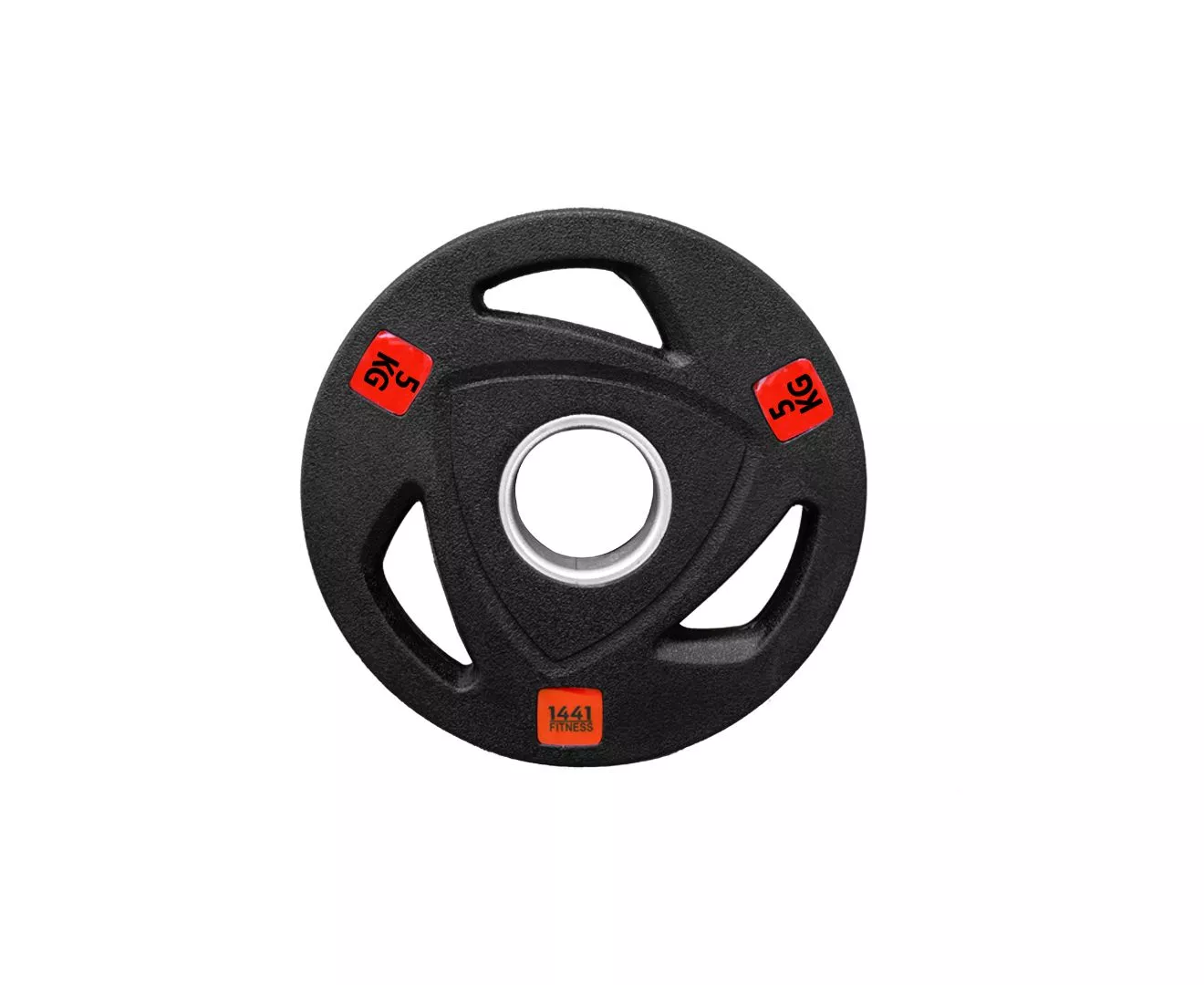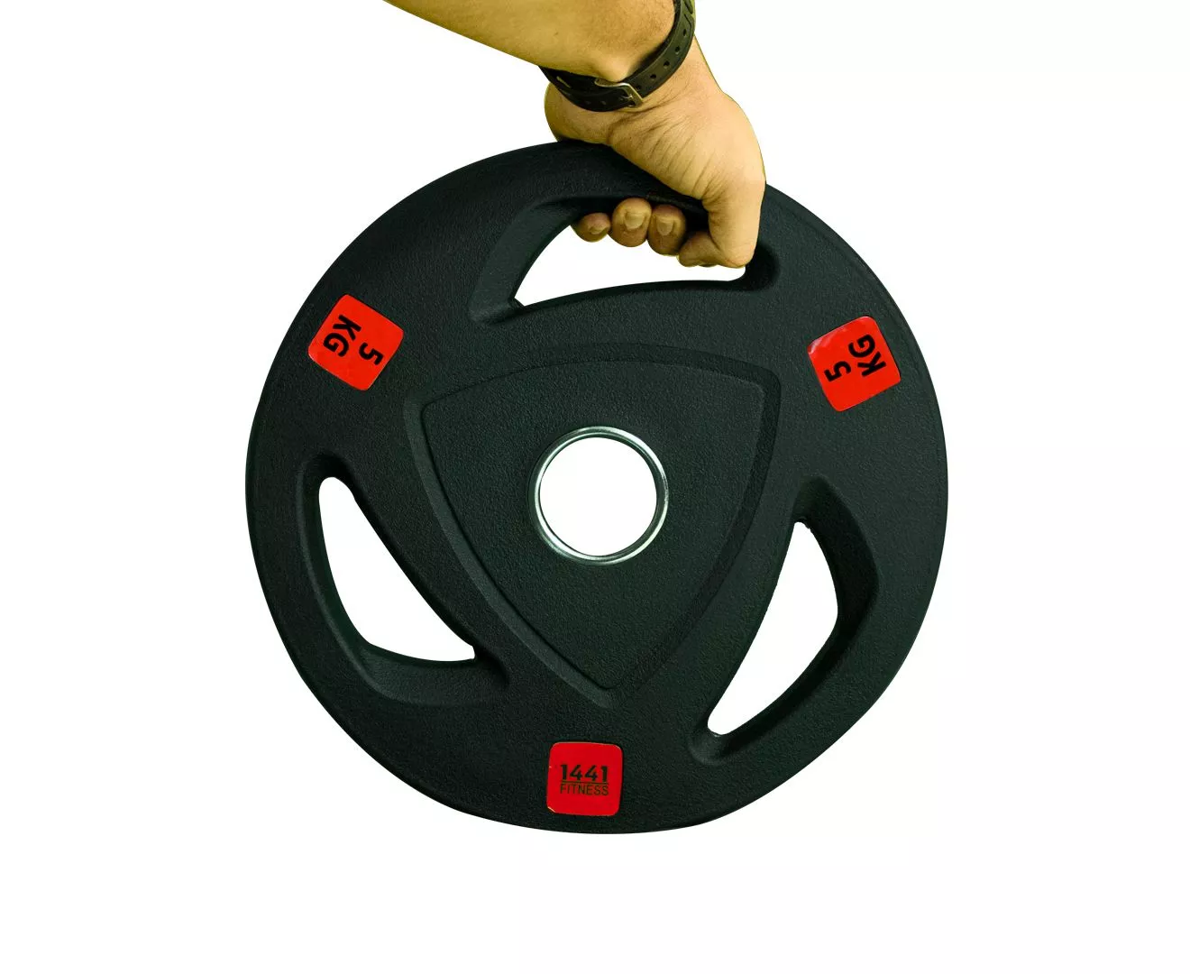 Manufactured from premium-grade cast iron metal, this rubber weight plate is durable and offers multiple benefits during your workout sessions. This Olympic weight plate with rubber coating is easy to lift and protect the disc and floors from cracking. Workout has never been so easier with the Tri-Grip Olympic Rubber Weight Plate available at 1441 Fitnessae. It reduces disc noise and resists rusting. The grip plate is specially designed with a tri-grip handle that offers a firm hold while doing exercises and also makes the lifting or loading on the bars easy. The gym weight plate is good for strength training, weight lifting, squats, chest exercises, and more to complement your strength training .