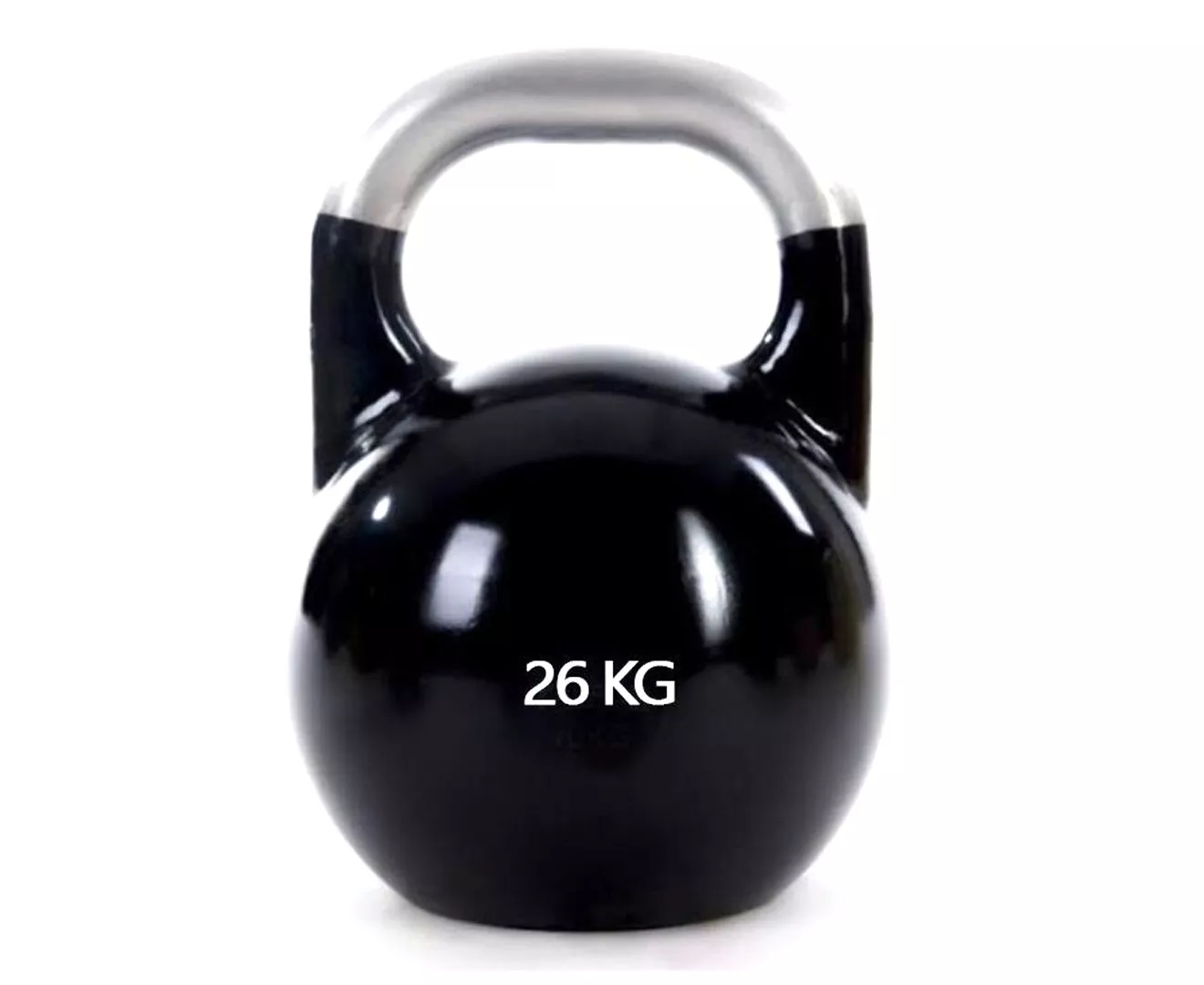 <p><strong>1441 Fitness Solid Steel Competition Kettlebell for Weightlifting Workout & Core Strength Training Muscle Building Colour Coded Heavy Duty Kettle Bell Equipment for Home & Gym (4-28 KG) </strong></p> <p><strong>BENEFITS OF COMPETITION KETTLEBELL</strong></p> <p>The benefits of Competition Kettlebells is that they adhere to competition regulations by being identical in size regardless of the weight. Perfect for dedicated kettlebell training. Made from a solid steel construction and come in full colour for quick identification. Kettlebells provide a real test of strength.</p> <p>Unlike any other weightlifting exercise, training with a kettlebell weight set allows you to perform ballistics and grinds, which can lead to faster results. Just about everything from jumping higher, running faster, kicking harder and better posture. Your glutes and hamstrings are your power source for building hip speed and explosive strength. Every muscle in your posterior chain will be enhanced with these competition kettle bell movements. This is what separates them from dumbbells.</p> <p><strong>DURABLE & STRORNG – </strong>Made from the highest quality of steel construction which makes the kettlebell weight set more durable & strong. These colour coded competition kettlebells suitable for all season.</p> <p><strong>VERSATILE & COMPLETE CORE STRENGTH TRAINING</strong> – 1441 Fitness competition kettlebells additionally provide fantastic dynamic flexibility.</p> <p><strong>PREMIUM QUALITY STEEL HANDLE</strong> – 1441 Fitness competition kettlebell with long lasting steel constructed shell body with easy grip and rust resistant handle for grasping and reducing fatigue.</p> <p><strong>FLAT SURFACE - </strong>Flat bottom enables upright storage, ideal for renegade rows, handstands, mounted pistol squats & utilize the overhead and rack positions easier.</p>