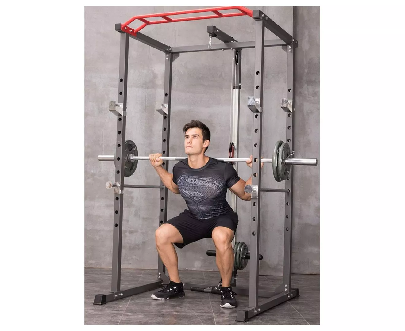 1441 فيتنس ماكينة سكوات وباور كايج مع بار لتمرين السحب للأعلى ومرفق لات من هيفي ديوتي J008 - لون الإطار رمادي