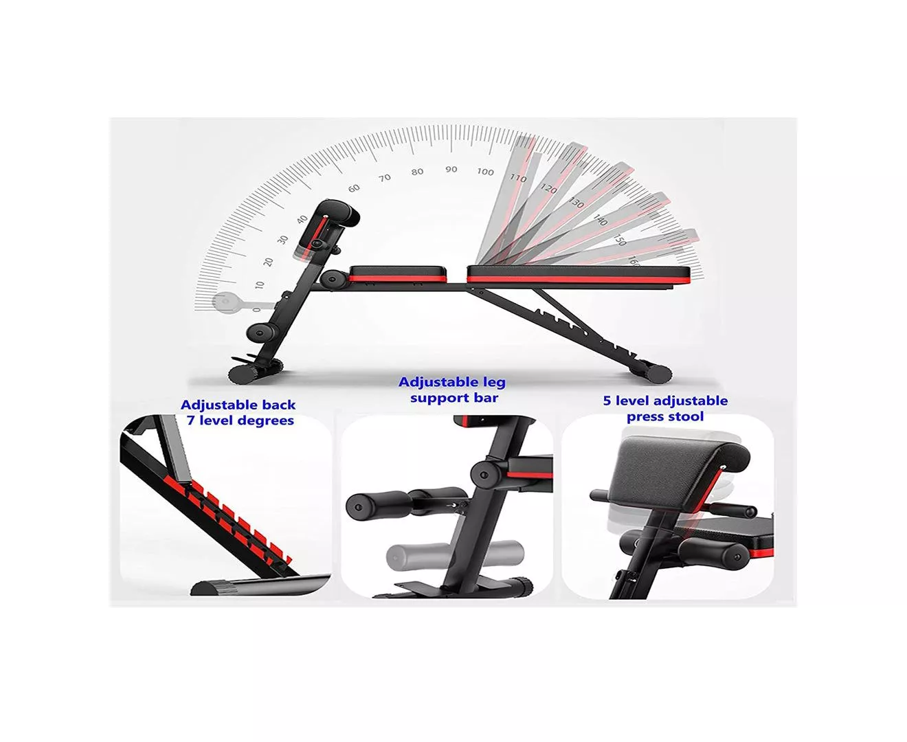 Full-body Exercise Equipment - This home exercise bench can be used as a sit-up bench, incline bench, ab bench, roman chair, weightlifting chair, you can exercise the muscles of the whole body, keep exercising, lose weight, strengthen muscles and stay healthy.Heavy-duty Structure - Load-bearing capacity has a unique triangular support structure to enhance balance and durability. The thickened footrest foam ensures comfortable movement. The maximum load capacity can reach 440 pounds.Adjustable Weight Bench - The seat and back pads can be readjusted into different positions. Tailor the bench to your training and lay it in an inclining, declining, or flat position. Multifunctional Workout Bench - The exercise bench can be used to target multiple muscle groups for a full body workout at home. It allows for a wide array of strength-training exercises that focus on the arms, legs, chest, and core.Convenient Assembly and Space Saving: According to the instructions, assembly takes only 5 minutes, After exercise, it can be placed in the corner, closet or under the bed.