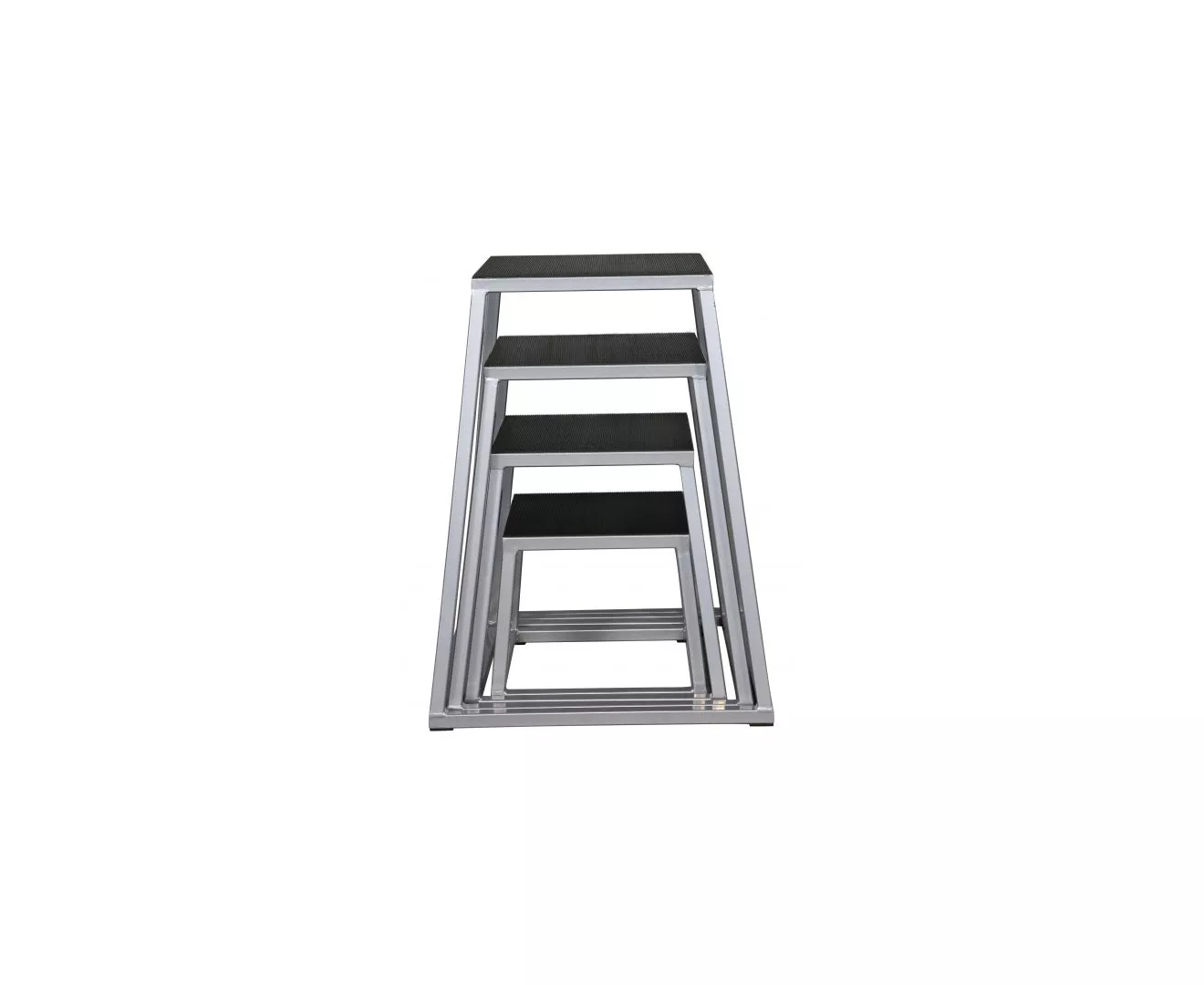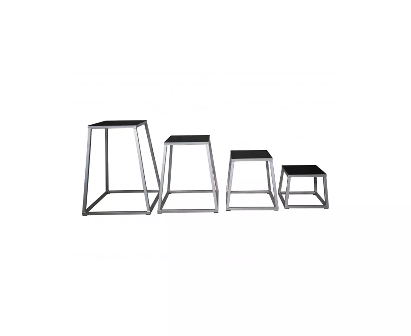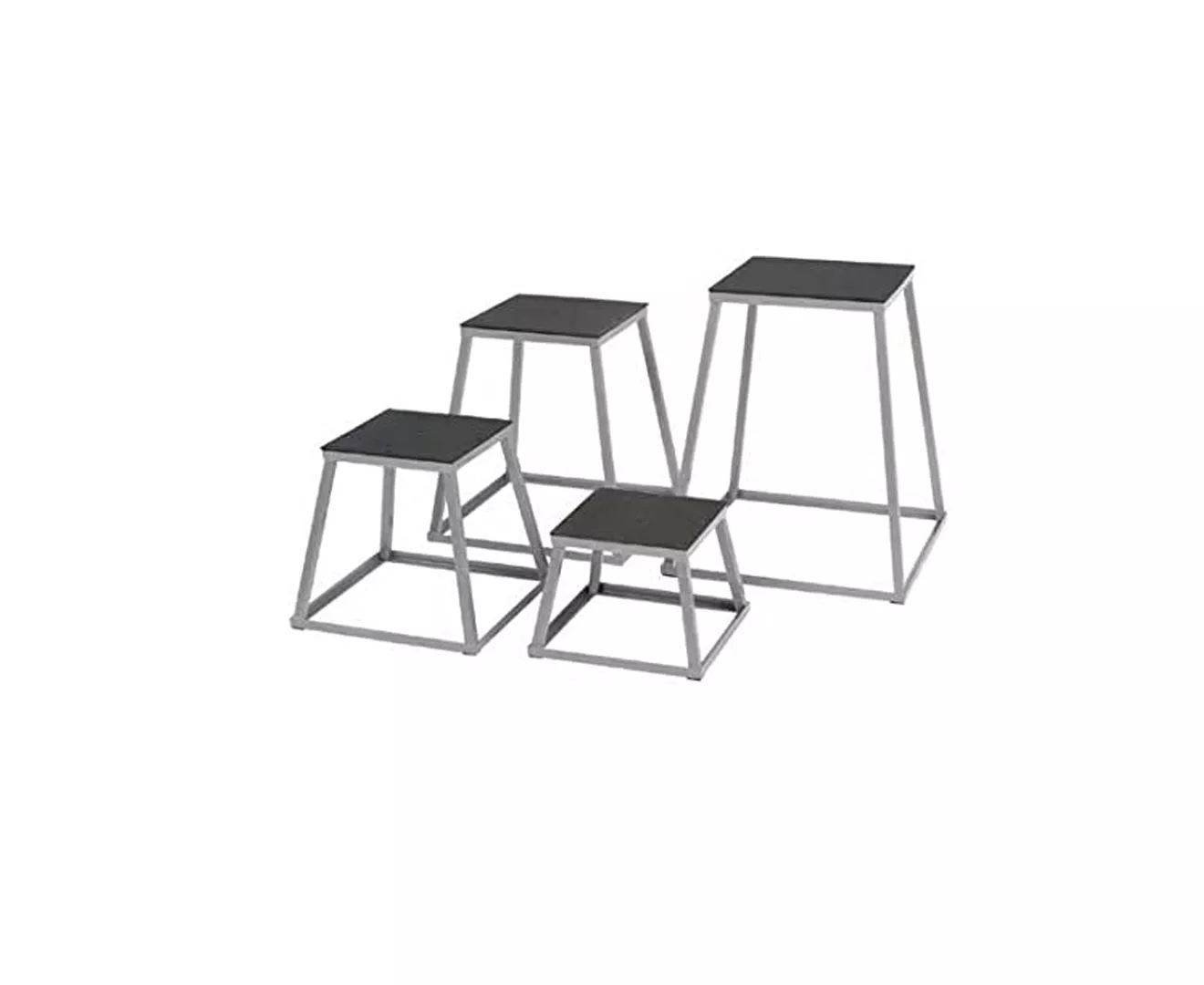 1441 Fitness Plyometric Box set provides four stackable boxes ranging from 12 to 30 inches in height. Made from durable square tubular steel construction with fully welded frames. These step-up boxes provide a stable platform to support your body weight. There are no screws on these boxes, so you don’t have to worry about separate pieces coming apart under pressure. The boxes feature a non-slip vinyl surface to provide a secure jumping platform. The four sizes provide an ideal progression from beginner to advanced athlete. It is recommended that beginners start with a 12-inch box, advancing at six-inch increments. These stolid steel boxes are more durable than wooden jump boxes, ensuring user safety, even after years of use. The platform of each box is smaller than the base, so that the legs angle inward as they rise. This helps to keep your shins from hitting the metal legs as you jump to the top of the box.