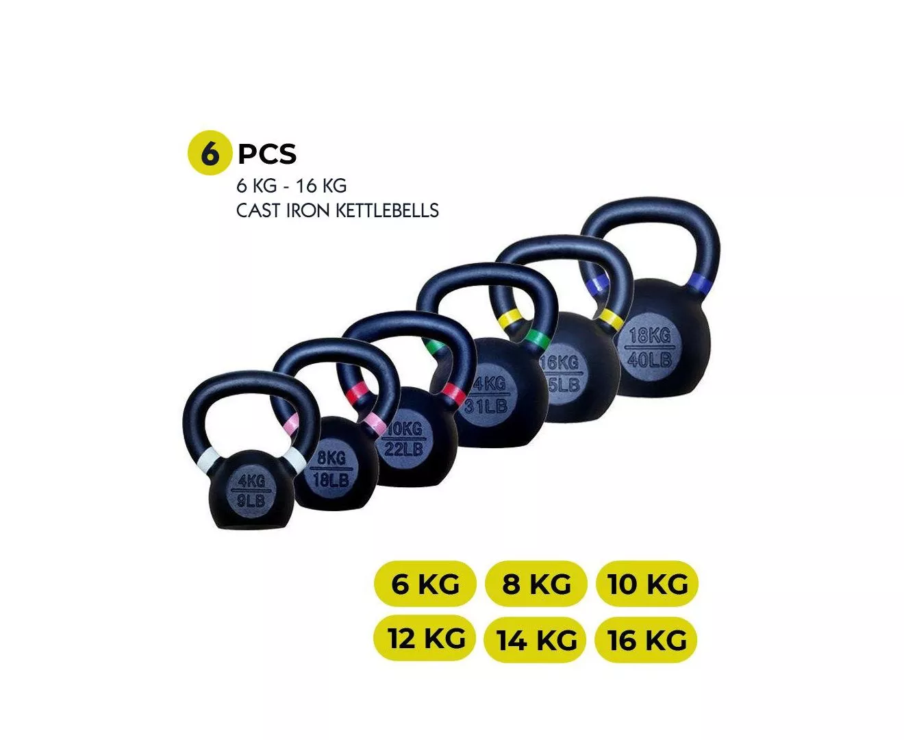 • ✔ CONVENIENT TO USE: Not only do the kettlebells have their weight printed in both kilograms but also in pounds. Choose between our wide ranges of sizes at the best price around. Set Includes: 6Kg, 8Kg, 10Kg, 12Kg, 14Kg, 16Kg, and 20Kg.