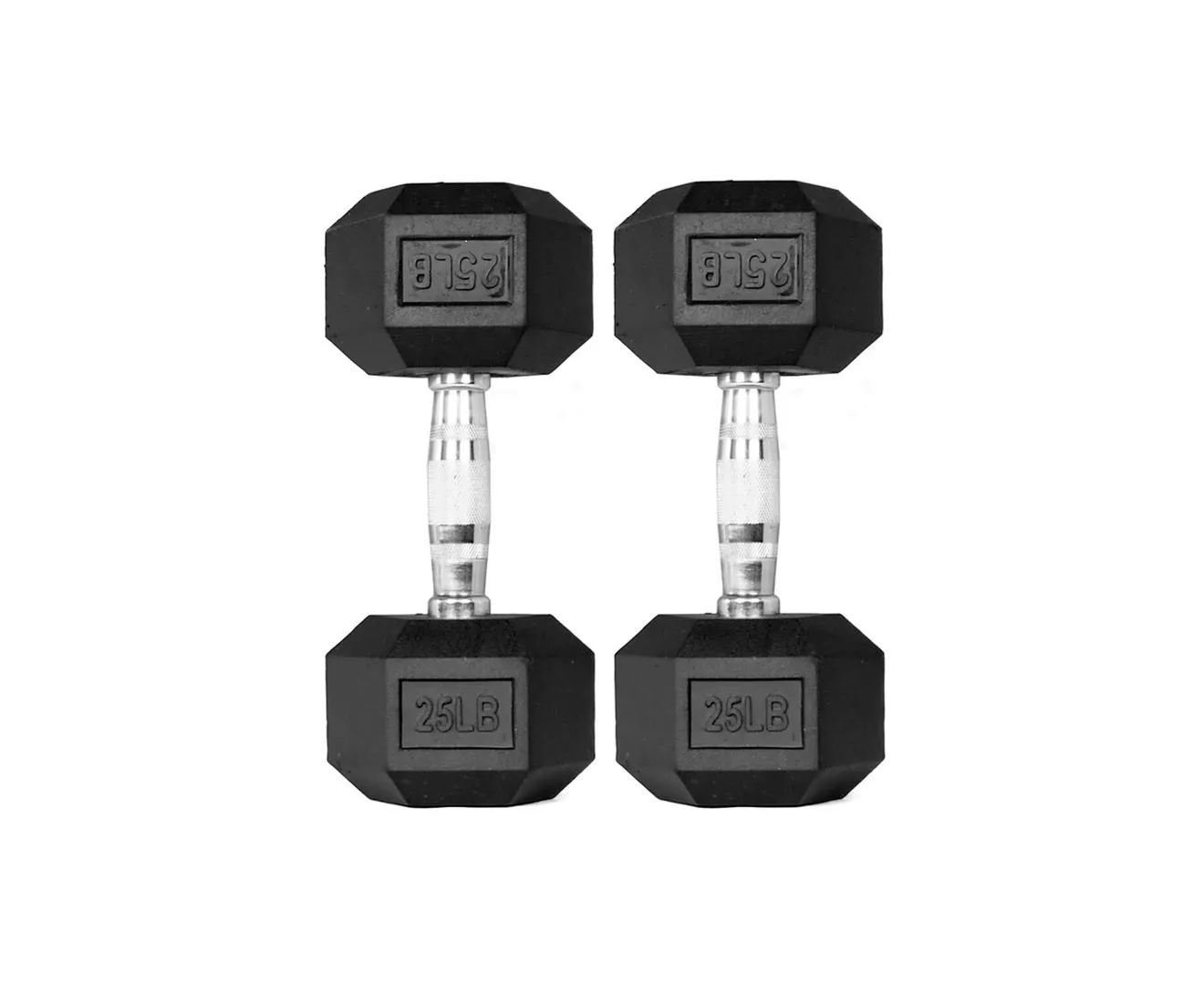 1441 Fitness Solid Rubber Hex Dumbell Set - Anti-Roll, Anti-Slip, Ergonomic Knurled Handle for Full Body Workout & Muscle Toning, Hand Weight for Strength Training and Fitness Exercise - Sold as Pair (5 - 50 LBS). Dumbells are ideal equipment to start building your own fitness zone at home. Easier to store than barbells, and be used for simple full-body exercises, help you become stronger. Rubber-coated counterweights tend to produce less noise and generally reduce confusion.Working out with free weights will gradually increase strength in your body, building muscle and burning fat at a faster rate. Dumbbells also allows to perform various exercises and strength training workouts using just these Hex dumbbells you can perform chest exercise, Biceps exercise, Triceps exercise, Shoulder exercise and many more. Hexagonal design prevent rolling, Hexagonal Dumbbell anti-rolling design prevents the weights from rolling when you set them down to perform other exercises. Rubber coated protect your floor, Made of natural rubber with no toxic, it Increase buffer and friction, protect the floor or rack. Comfortable Chrome Handle & Textured handle is ergonomically designed. The knurled design of the handle surface improves the grip. Chrome-plated handles No maintenance required, long-lasting finish.