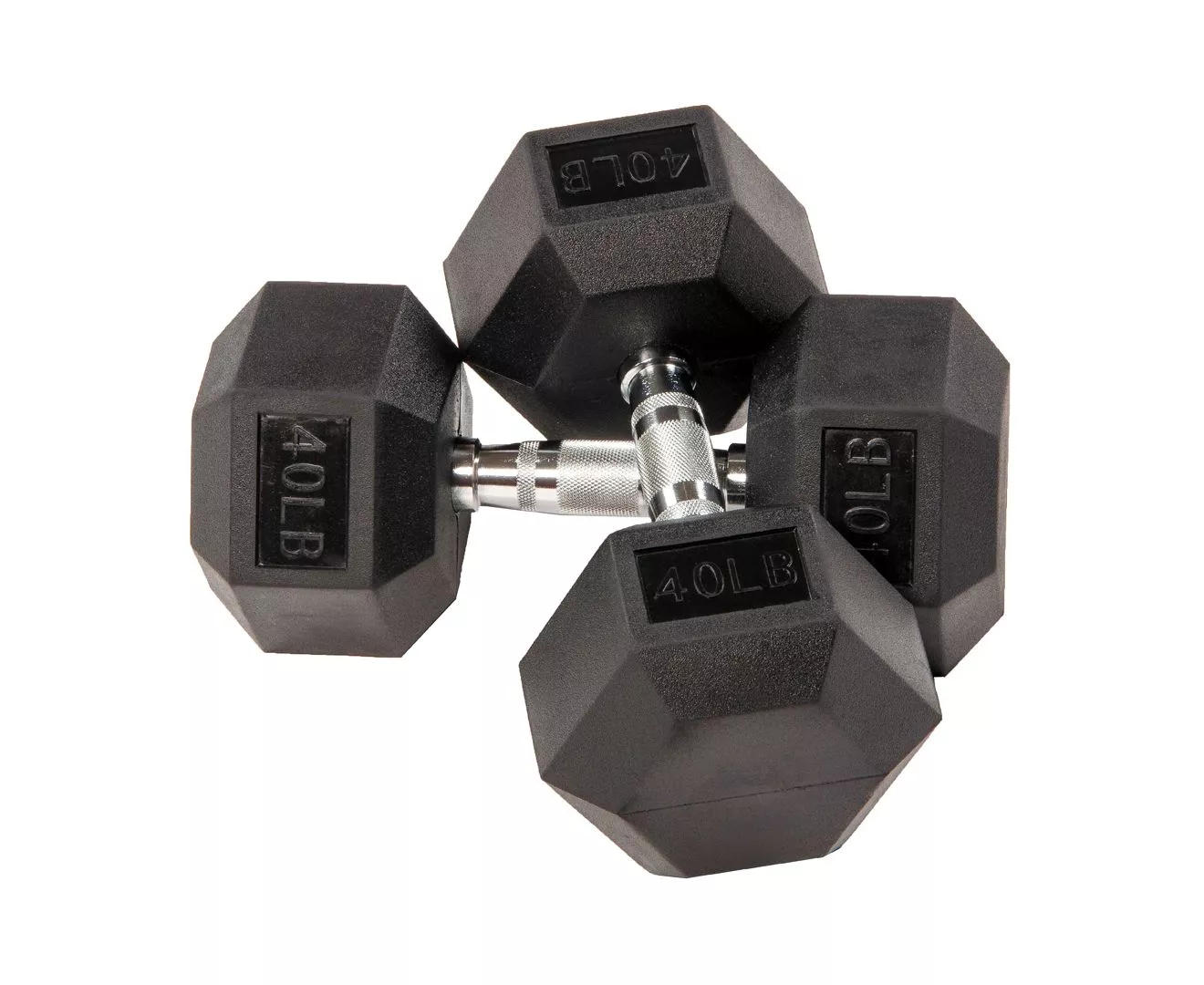 1441 Fitness Solid Rubber Hex Dumbell Set - Anti-Roll, Anti-Slip, Ergonomic Knurled Handle for Full Body Workout & Muscle Toning, Hand Weight for Strength Training and Fitness Exercise - Sold as Pair (5 - 50 LBS). Dumbells are ideal equipment to start building your own fitness zone at home. Easier to store than barbells, and be used for simple full-body exercises, help you become stronger. Rubber-coated counterweights tend to produce less noise and generally reduce confusion.Working out with free weights will gradually increase strength in your body, building muscle and burning fat at a faster rate. Dumbbells also allows to perform various exercises and strength training workouts using just these Hex dumbbells you can perform chest exercise, Biceps exercise, Triceps exercise, Shoulder exercise and many more. Hexagonal design prevent rolling; Hexagonal Dumbbell anti-rolling design prevents the weights from rolling when you set them down to perform other exercises. Rubber coated protect your floor & Made of natural rubber with no toxic, it Increase buffer and friction, protect the floor or rack. Comfortable Chrome Handle, Textured handle is ergonomically designed. The knurled design of the handle surface improves the grip. Chrome-plated handles No maintenance required, long-lasting finish.