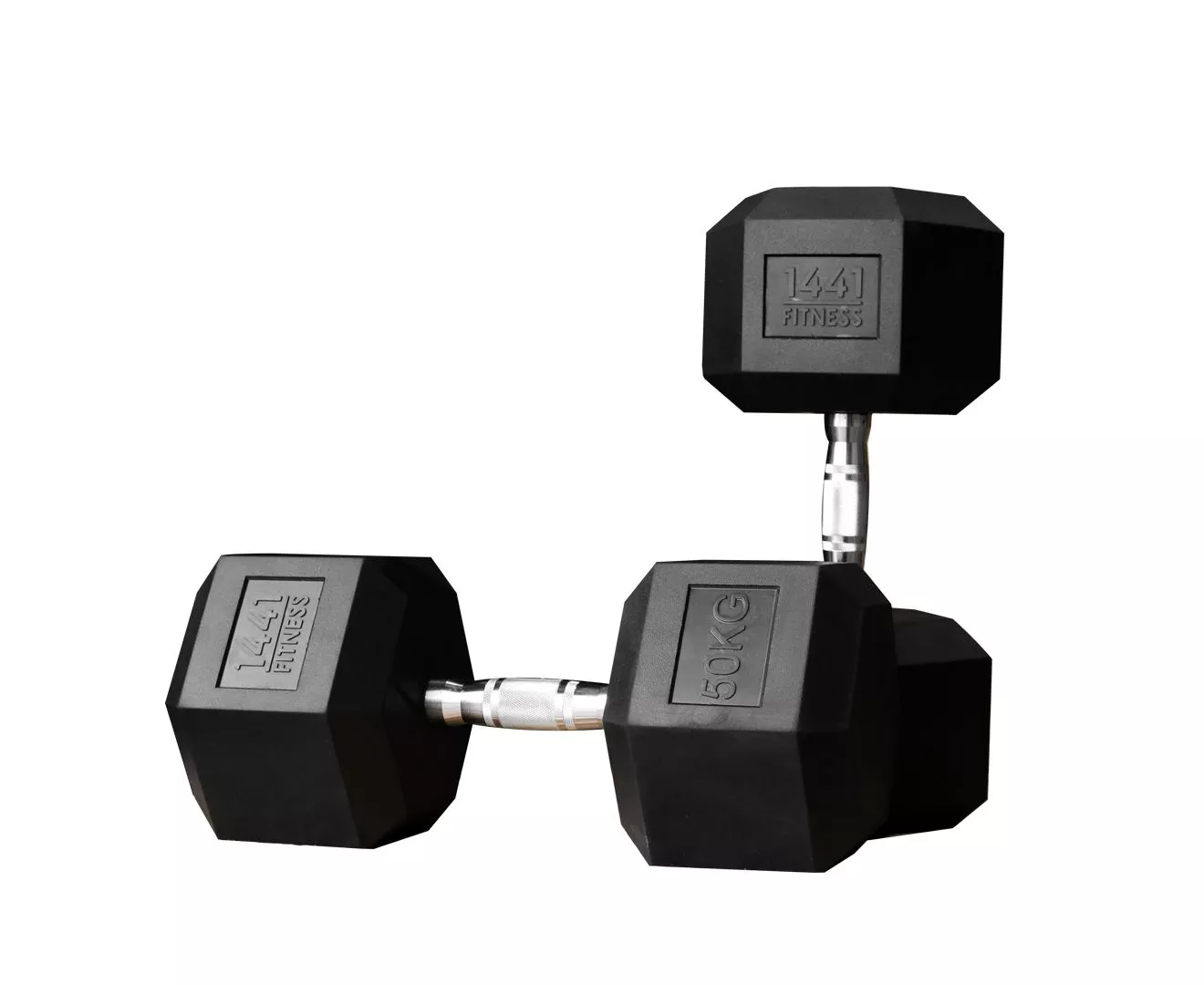 1441 فيتنس أثقال مطاطية سداسية الشكل (50 كيلوجرام) – أثقال حديدية مغلفة بالمطاط لتمارين المنزل والنوادي الرياضية