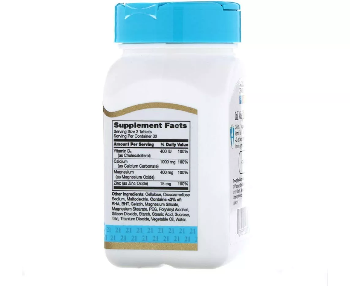 ماجنيزيوم، كالسيوم، زنك، فيتامين د، من توينتي فيرست سينتشيري - 90 قرص