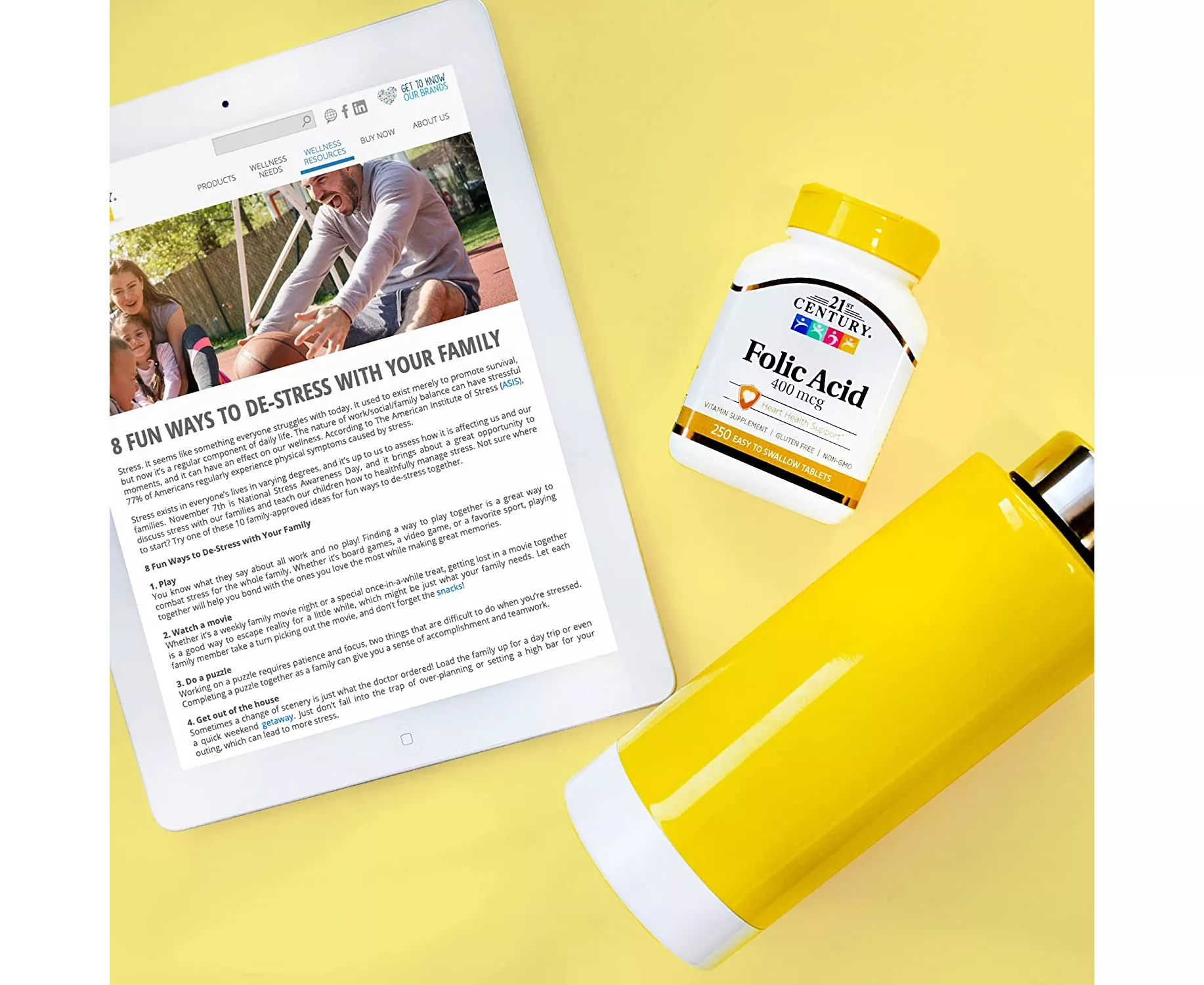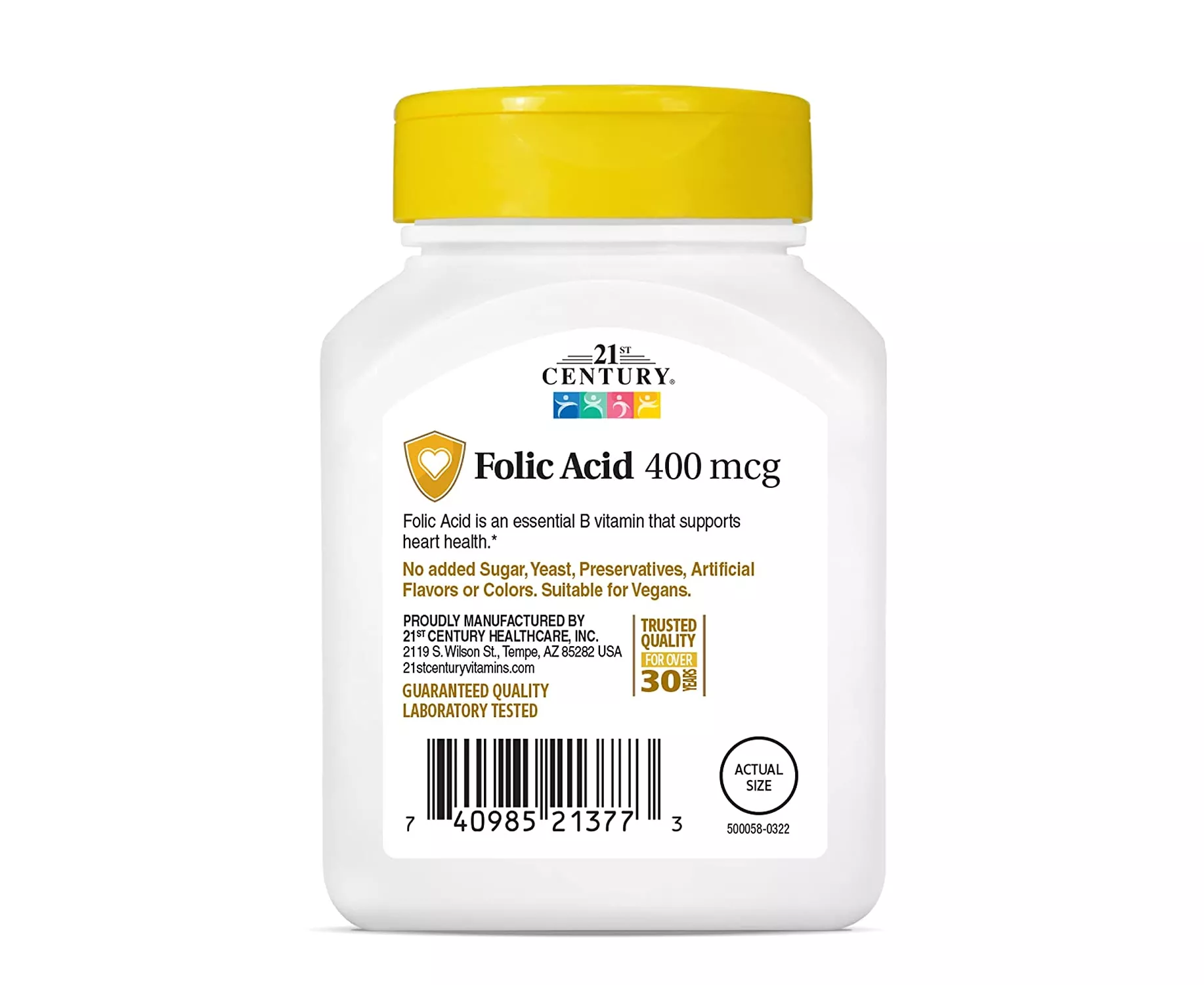 B vitamins from folic acid are essential for heart health. Women who take adequate amount of folic acid with healthful diets may reduce their risks of having a child with birth defects of the brain or spinal cord. But the folic acid intake should exceed 1000 mcg. It is free from added sugar, salt, yeast, artificial colors and preservatives. The product is guaranteed ample for purity, freshness and label potency