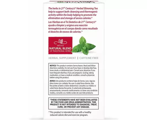 The herbs in 21st Century's Herbal Slimming Tea helps to support both cleansing and thermogenic activity within the body helping to promote the elimination and storage of excess calories.