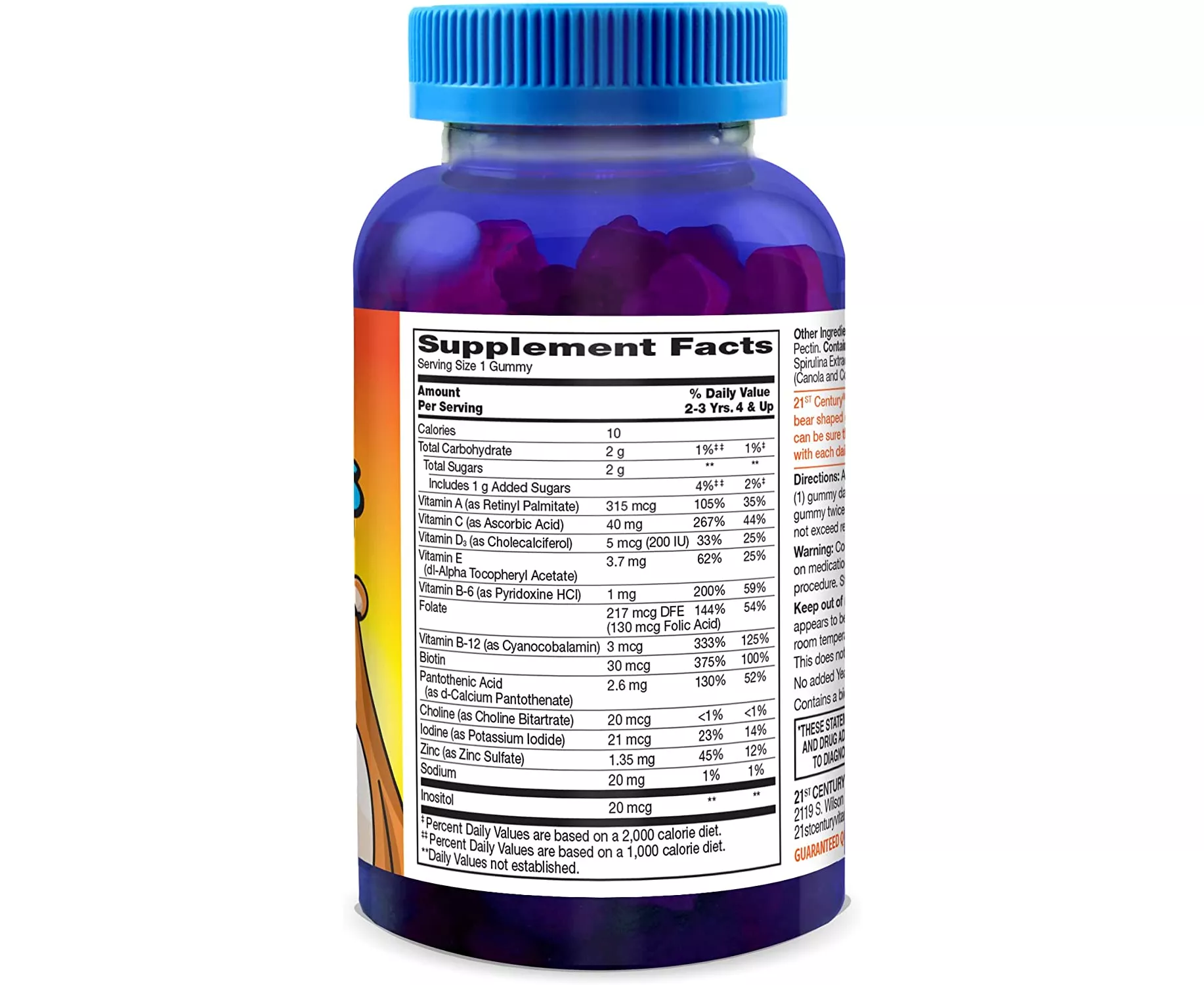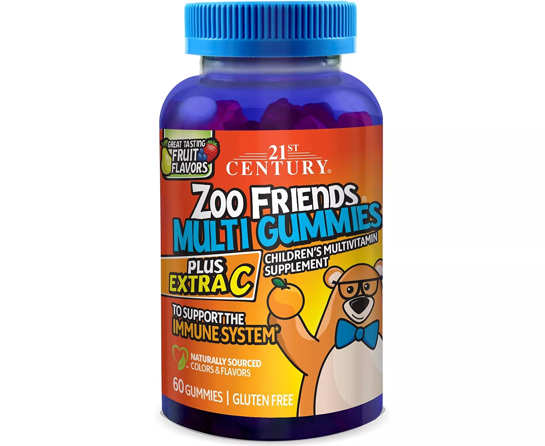 21st Century Mimi Bears Plus Extra C children's gummies make multivitamins fun. These bear-shaped gummies with naturally sourced fruit flavors taste great too. Parents, you can be sure that your children are receiving valuable nutritional support with each daily serving of Zoo Friends Multi Plus Extra C Gummies.