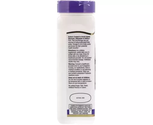 Enteric coated to avoid upset stomach, aftertaste and reflux. Fish, flax and borage oils are good sources of polyunsaturated fatty acids. Omega-3 fatty acids from fish and flax oils are important in support of heart health.* Triple omega also contains the beneficial omega-6 and omega-9 fatty acids as well.* No added sugar, salt, yeast, preservatives, artificial flavors or colors. *These statements have not been evaluated by the Food and Drug Administration. This product is not intended to diagnose, treat, cure, or prevent any disease.