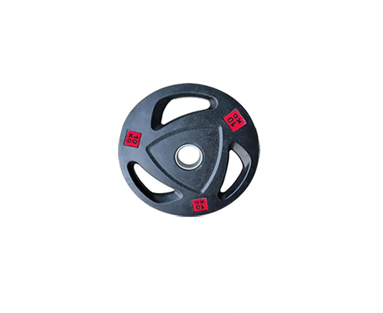 • UNIQUE DESIGN - The tri-grip design of the Weight plates makes it easier to handle and gives it an aesthetic look as well. The handles offer excellent control and stability during intense workout sessions. The matte black color complements the shiny silver olympic bar and the tri handle grip allows different kinds of plates exercises as well.