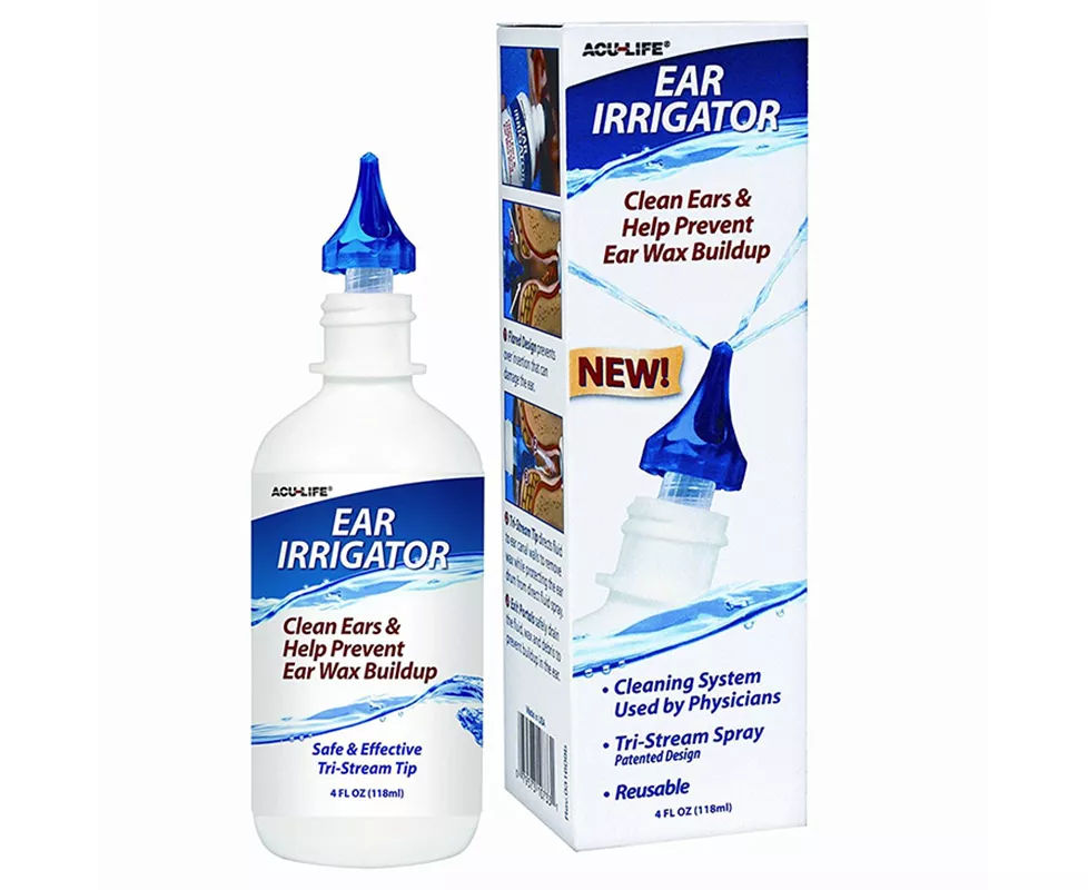 Flared design prevents over-insertion. Exit portals provide clean, controlled fluid drain. Tri-stream tip safely directs fluid to ear canal walls. Product packaging and color may vary