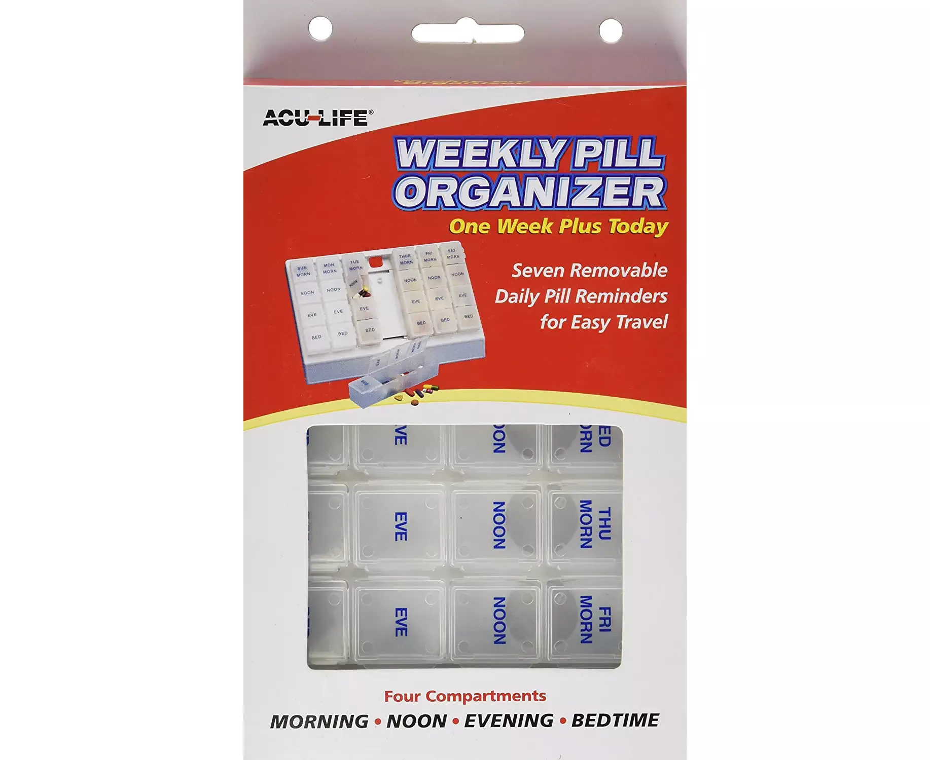 7-day pill box with 4 compartments per day. Daily boxes are removable; convenient for daily travel. Acu-Life is a world leader for innovative self-care products. For over 35 years Acu-Life has designed and developed self-care products that positively impact the lives of people throughout the world.