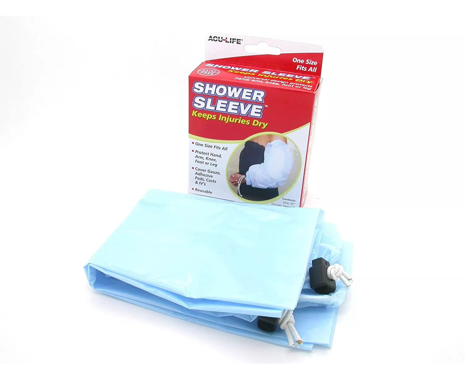 The Shower Sleeve by Acu-Life is the easy way to keep your injuries dry and protected during showering. The design means that it can be used on many different parts of the body including the arms, legs, feet and hands. It can be used to cover gauze, adhesive pads, casts and IV's. It is not designed to be submerged into water.