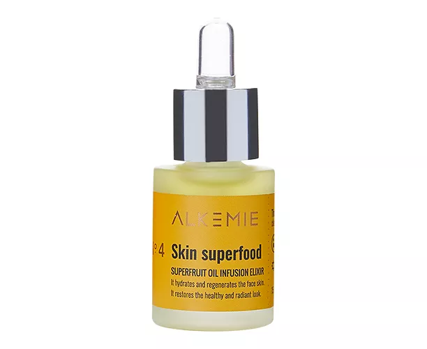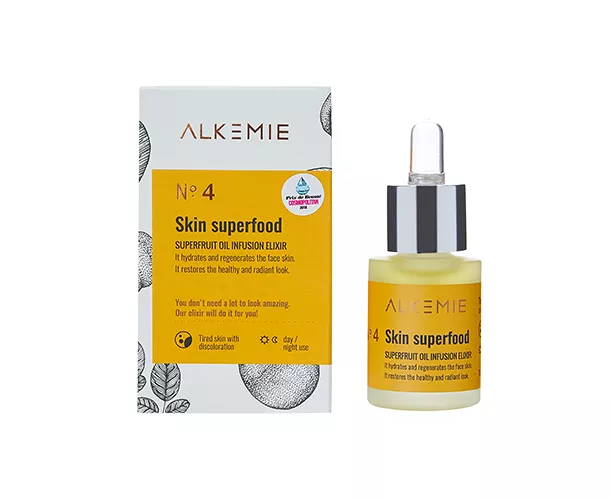 A multivitamin bomb for every skin type that needs energy, nutrition and support in combating the oxidative stress. Especially recommended for those who work in air conditioned offices, and smokers.It contains as much as 15% of organic superfruit extract – guarana, acerola, sea buckthorn, cranberry and Amazonian camu-camu. The loading dose of vitamins, antioxidants and nutrients effectively combats free radicals and extensively revitalizes the skin. Thanks to its form of a bio active oil with a light and silky consistency, the elixir absorbs very quickly, is very efficient and does not burden the skin (the effect of the so called ‘dry oil’).It contains the C-infusion – the new generation of vitamin C soluble in oils, which penetrates deep into the skin in a biologically pure form, and stays active long after the application.The elixir base of carefully selected organic oils nourishes, regenerates the skin and enhances its elasticity. When used systematically, the serum will make even dull and tired skin regain its shine and the healthy, radiant.