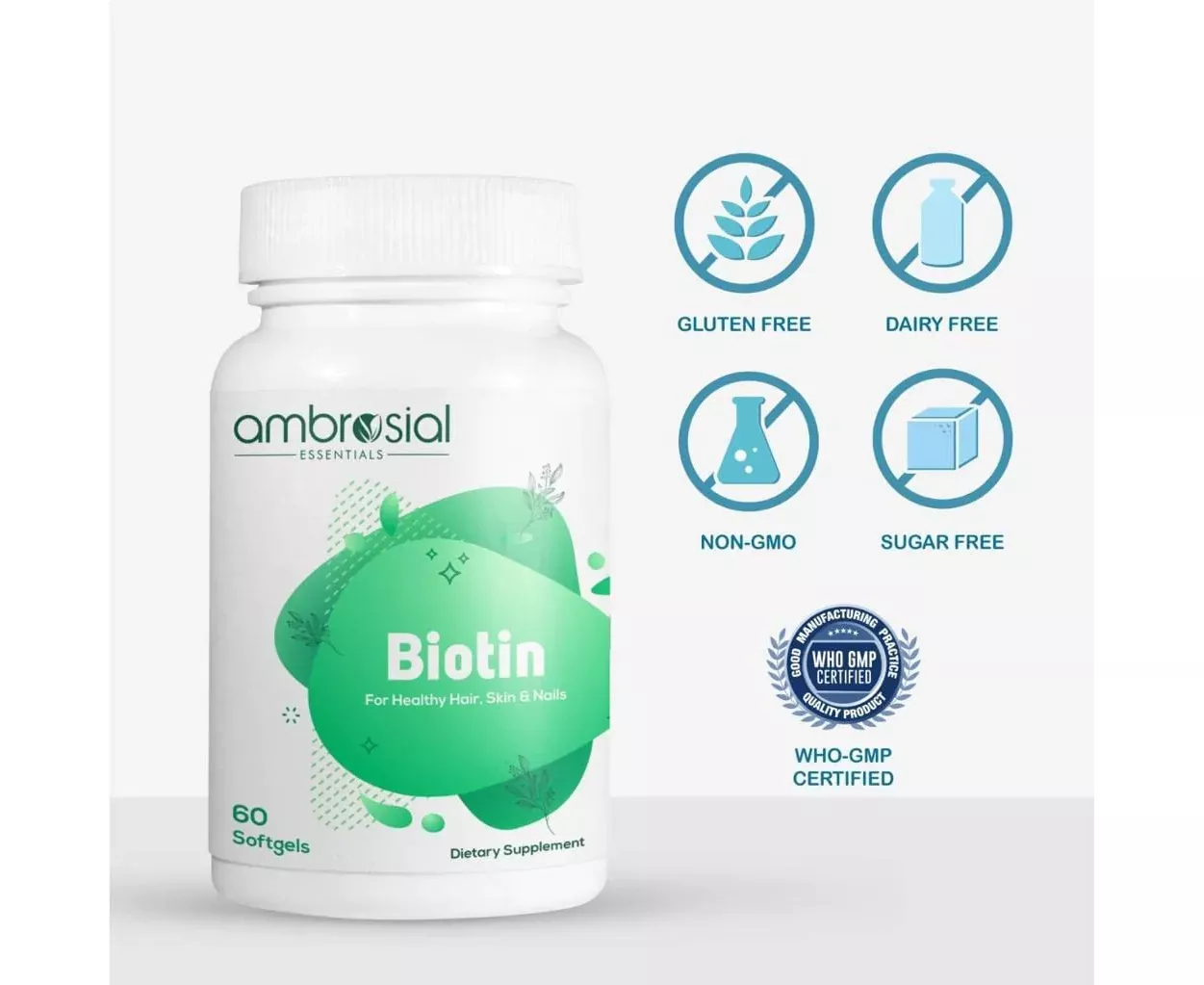 • Ambrosial Plant based Biotin capsules promotes hair growth and stimulates hair follicles for healthy & strong hair.