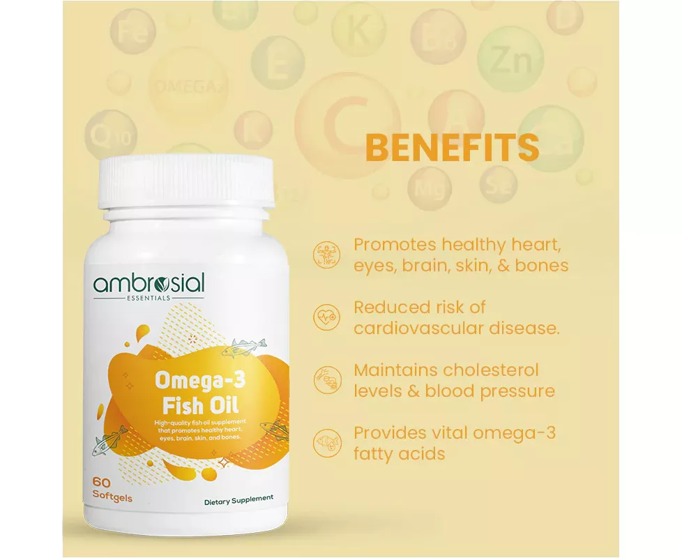 Buy Ambrosial Omega-3 Fish Oil soft capsule online within UAE, including Dubai, Abu Dhabi, and Sharjah, and we also get this delivered to Saudi, Oman, Bahrain, Qatar, Kuwait, etc.