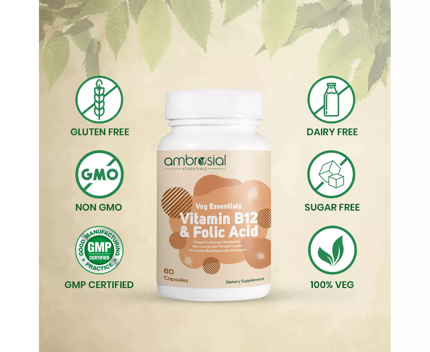 • Vitamin B12 & Folic Acid supports heart health by promoting healthy levels of homocysteine already within a normal range; It also assists in the regeneration of red blood cells, which help to deliver oxygen throughout the body