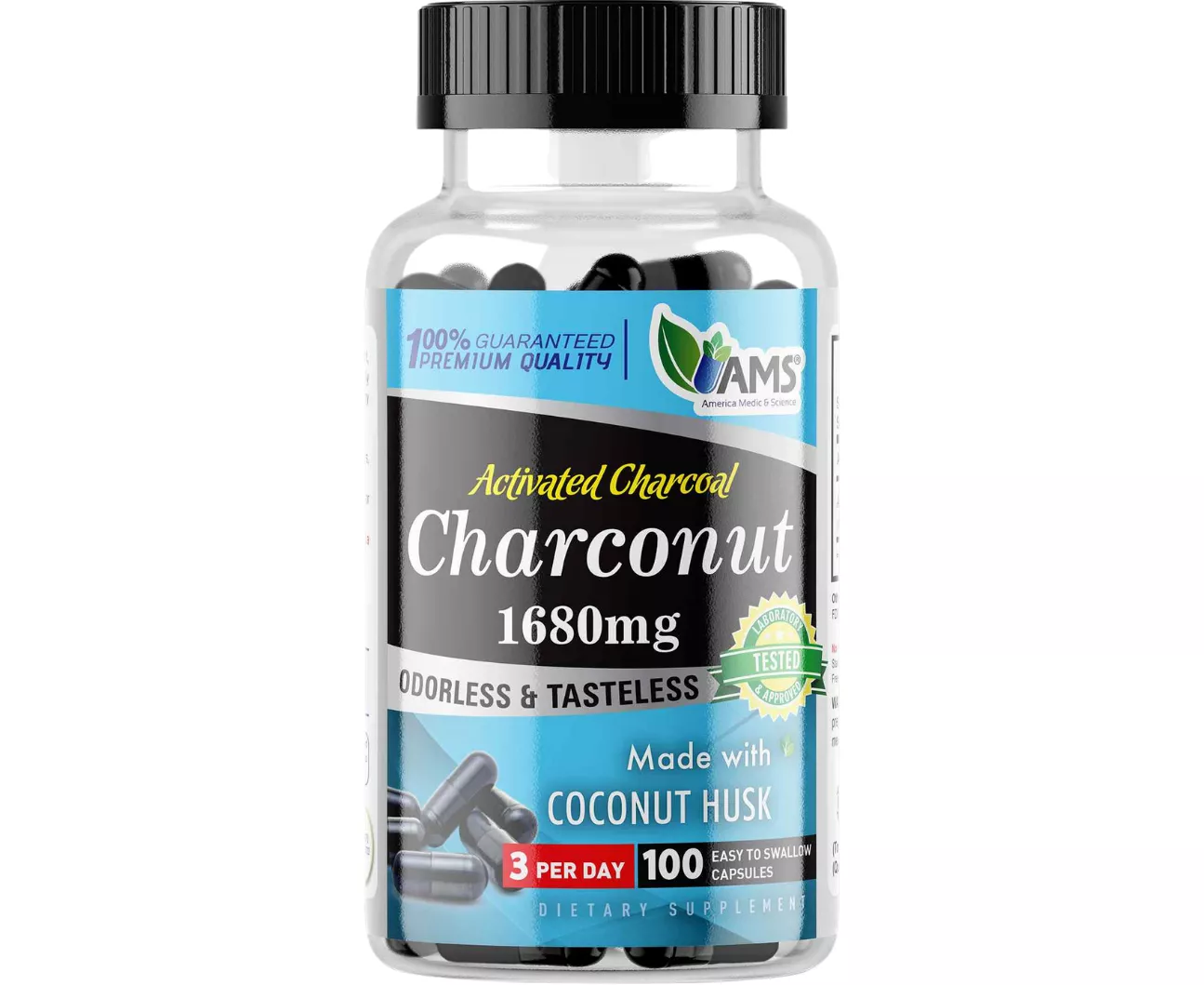 AMS® Charconut capsules contain Activated Charcoal which traps the toxins and chemicals, allowing them to be flushed out so the body does not reabsorb them. AMS® Charconut helps to prevent abdominal tension and to alleviate intestinal discomfort and bloating by binding to the gas-causing byproducts. AMS® Charconut helps also to prevent bacteria & drugs that can cause diarrhea from being absorbed.