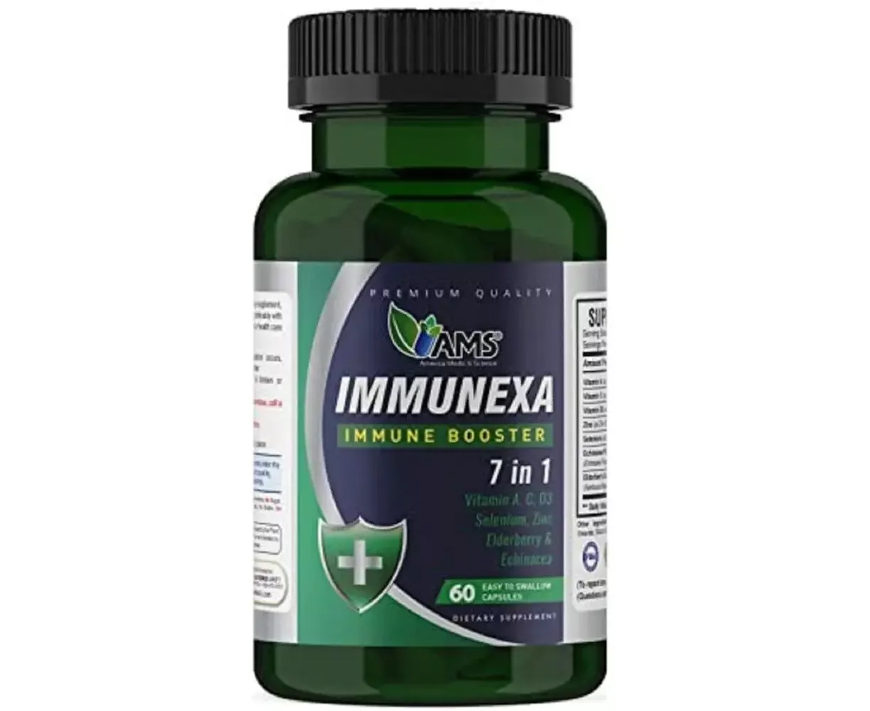 AMS Immunnexa Capsules 60'S Immune Booster, 7-in-1 Powerful Blend of Vitamin A, Vitamin C, Vitamin D3, Zinc, Elderberry, Echinacea - Supports Overall Health, Provides Vital Nutrients & Antioxidants.
