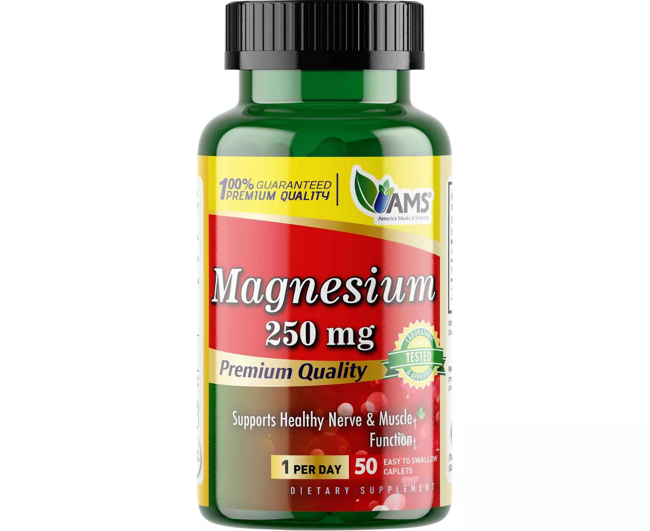 Magnesium is a vital mineral for the proper functioning of the body; it supports many biochemical reactions and hundreds of bodily functions. Moreover, low levels of magnesium are linked to a number of health conditions. Many of us do not get their daily needs of Magnesium. Dietary supplementation supports healthy nerve and muscle functions, helps boost exercise performance, provides anti-inflammatory benefits, helps prevent migraine, controls blood sugar levels. AMS® Magnesium supplement provides 250mg per daily dose.