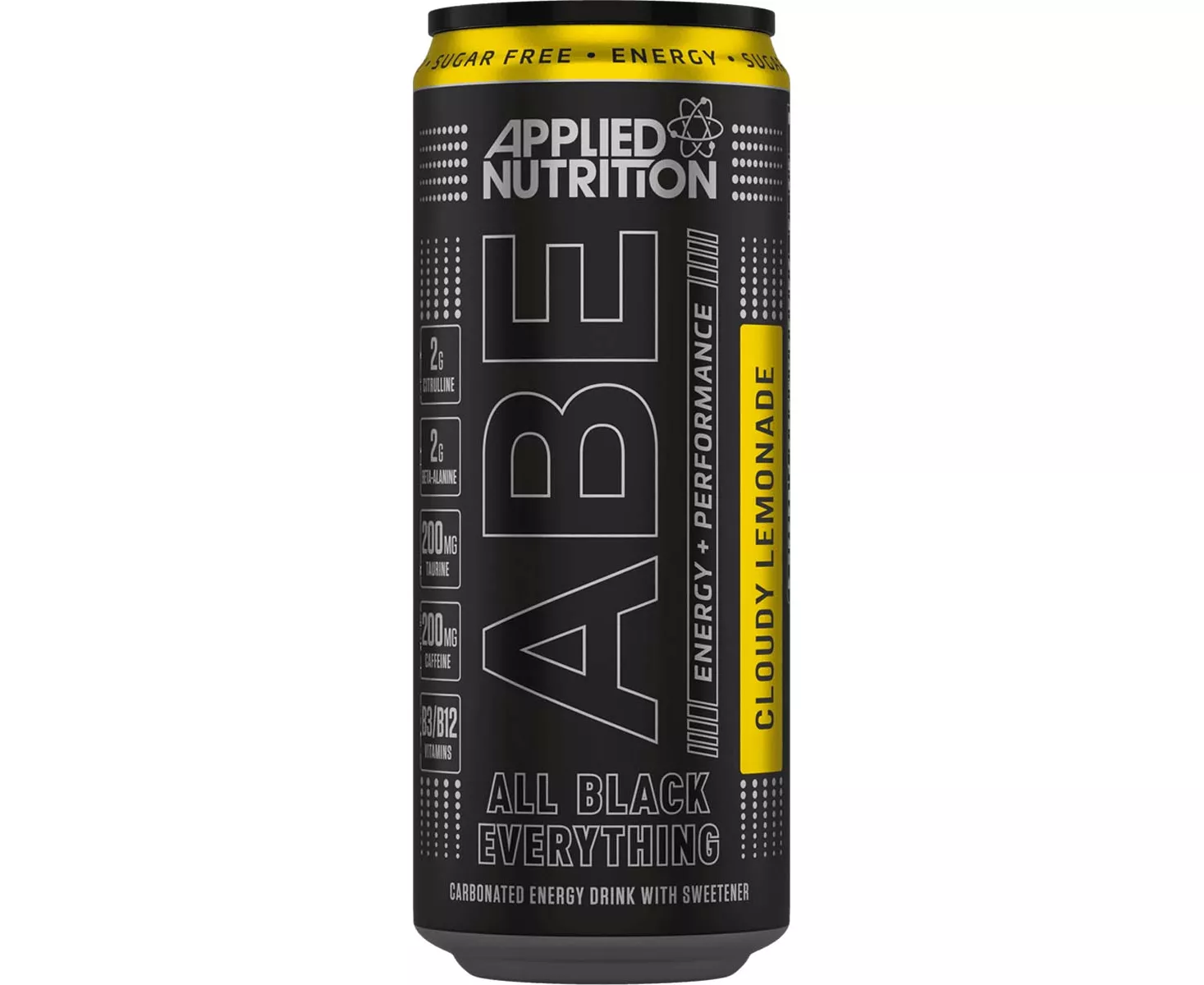 ABE Carbonated Beverage with Zero Sugar, 200mg Caffeine, Citrulline, Beta-Alanine, Taurine and added B-Vitamins.