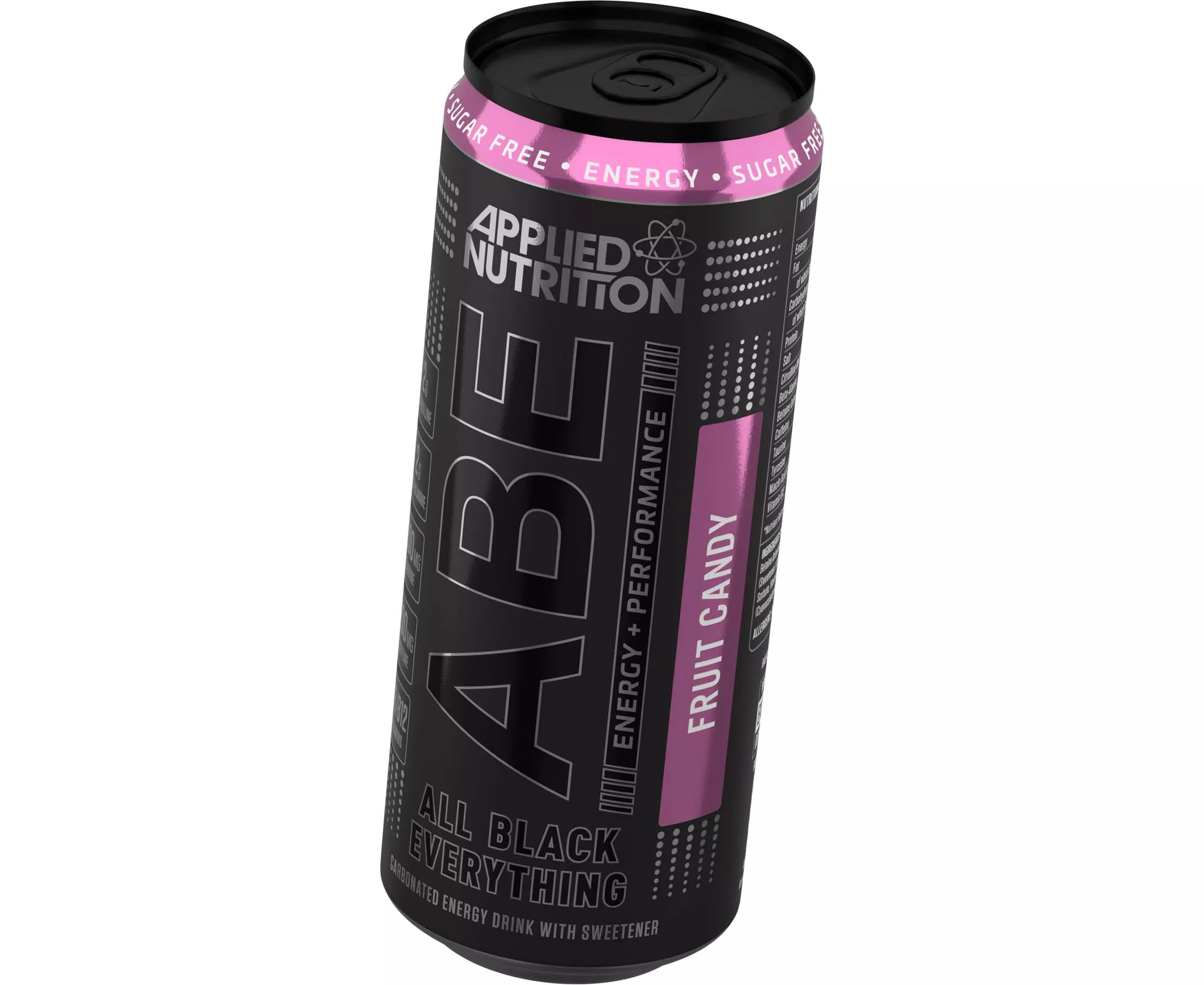ABE Carbonated Beverage with Zero Sugar, 200mg Caffeine, Citrulline, Beta-Alanine, Taurine and added B-Vitamins.