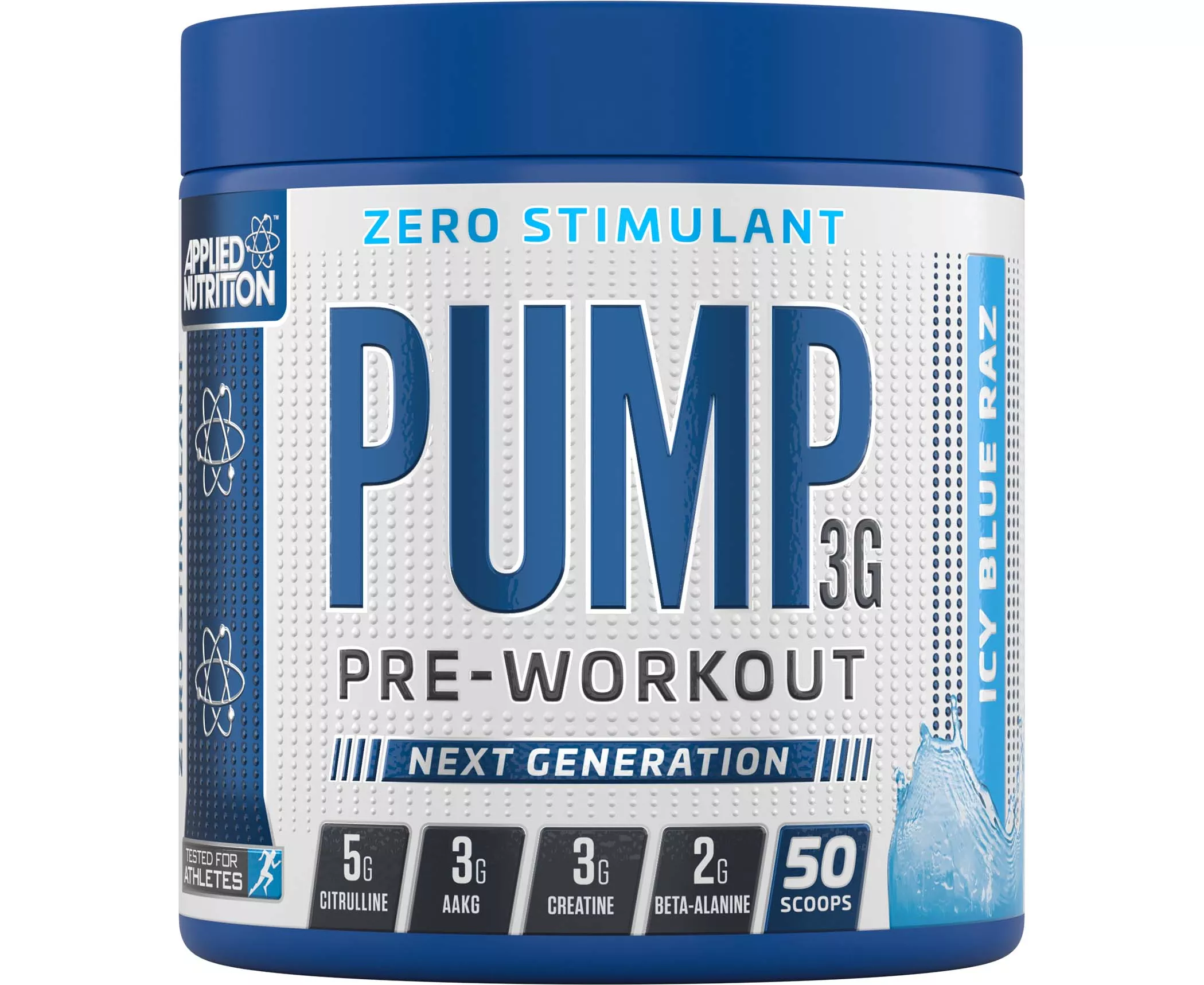 APPLIED NUTRITION Pump 3G Zero Stimulant Feeding Pump is a blend of the most popular and most researched ingredients to help improve pumping, focus and performance. Creatine monohydrate increases the high physical performance of short-term, high-intensity exercise without a powerful stimulant dose. Contains Vitamin B12 to reduce tiredness and fatigue. Helps improve focus and performance. It's perfect for late-night workouts. Creatine monohydrate increases physical performance in successive bursts of short-term workouts.