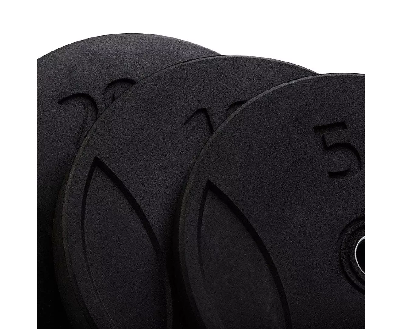 • Their textured surface facilitates easy lifting from the floor and attaching them to the barbells.