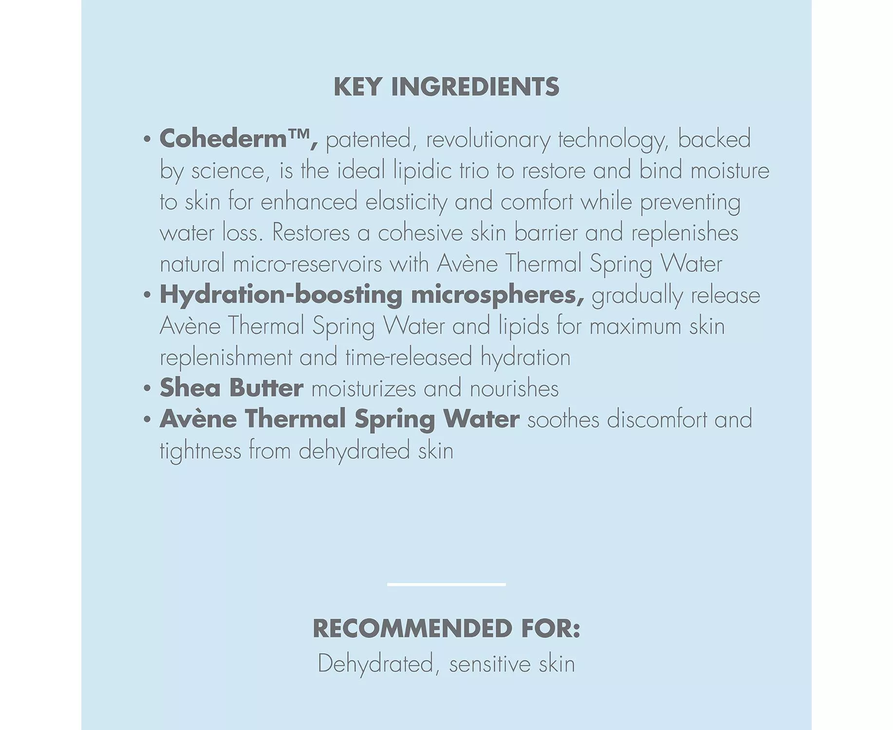 Avene hydrance optimale rich hydrating cream, a hydrating moisturiser for dry to very dry dehydrated sensitive skin. Based on meiboserin which limits the evaporation of the avène thermal spring water from the skin and lipomucine which increases coverage across the skin. Paraben free