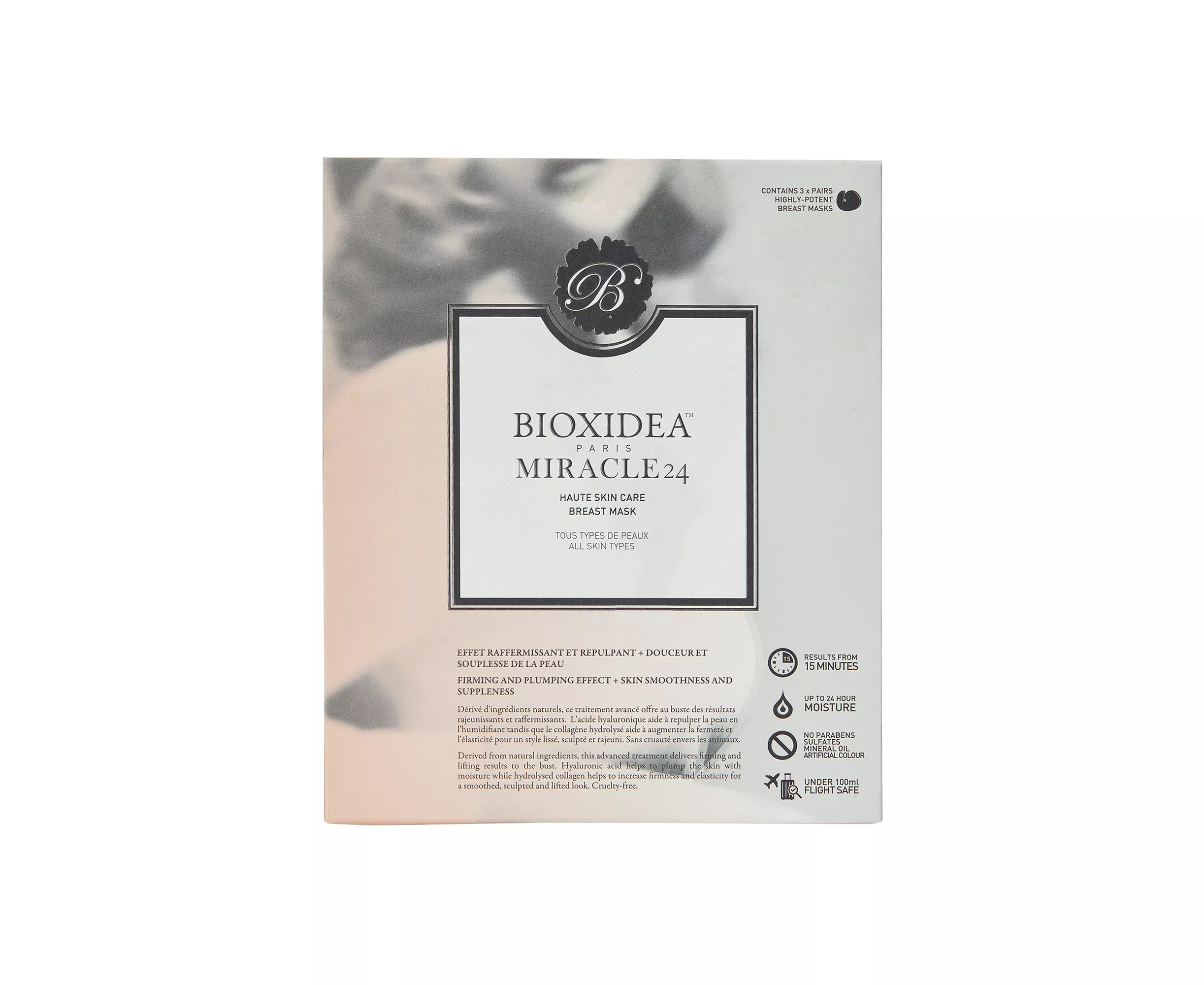 Derived from natural ingredients this Bioxidea Miracle24 Haute Skin Care Breast Mask is an advanced treatment that delivers firming and lifting results to the bust. Hyaluronic acid helps to plump the skin with moisture while hydrolysed collagen helps to increase firmness and elasticity for a smoother, sculpted and lifted look.