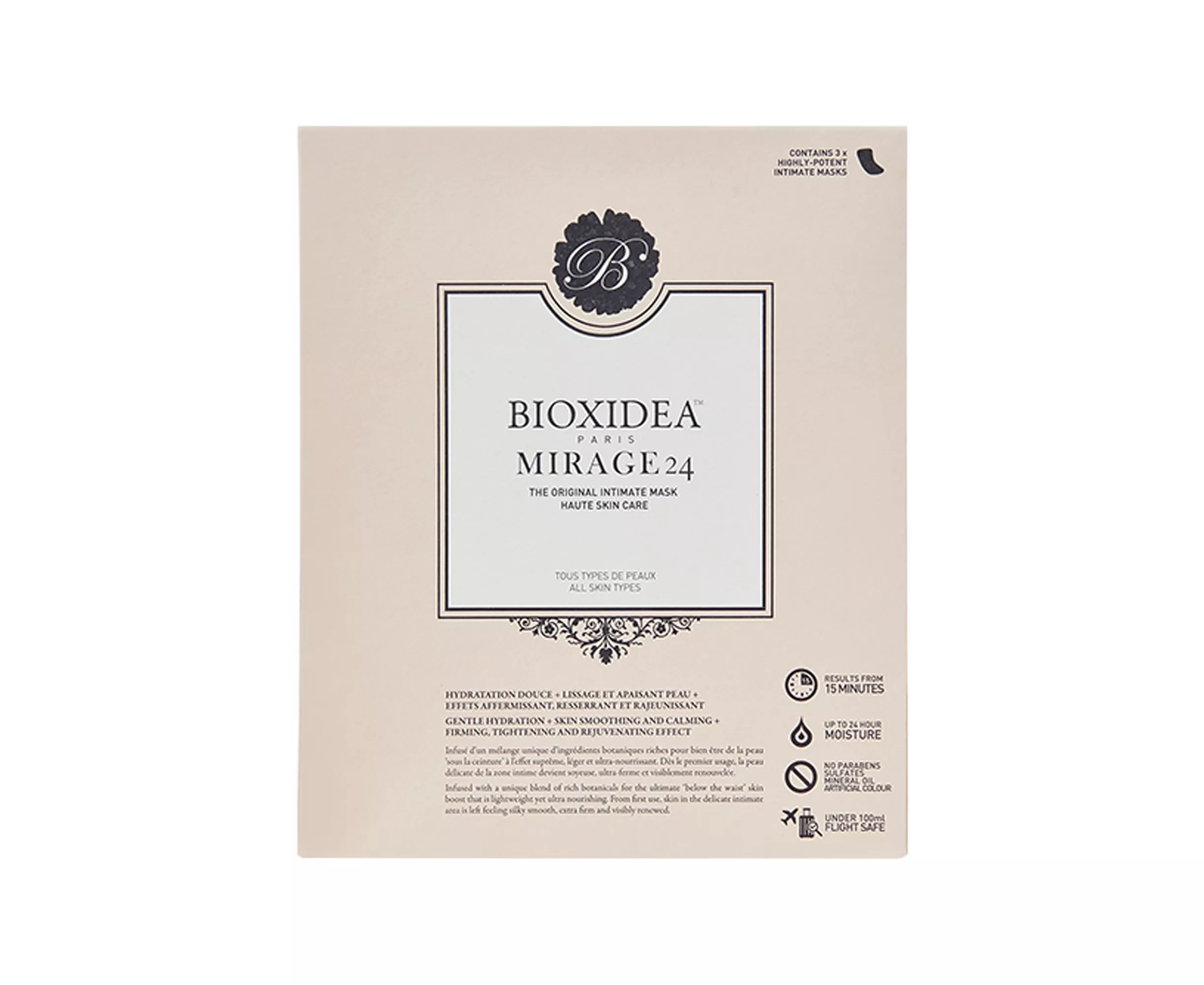 Infused with powerful peptides, Bioxidea Mirage24 Haute Skin Care Intimate Mask is created especially for the intimate area. Based on patented Bio-Cellulose technology, it hydrates, nourishes and brightens the skin. This new generation of masks continuously infuses highly enriched nutrients into the skin providing fast and effective nourishment. Mirage24 Face Mask works fast as a skin relaxing agent and is effective at visually smoothing overall line depth and fine lines on the skin.