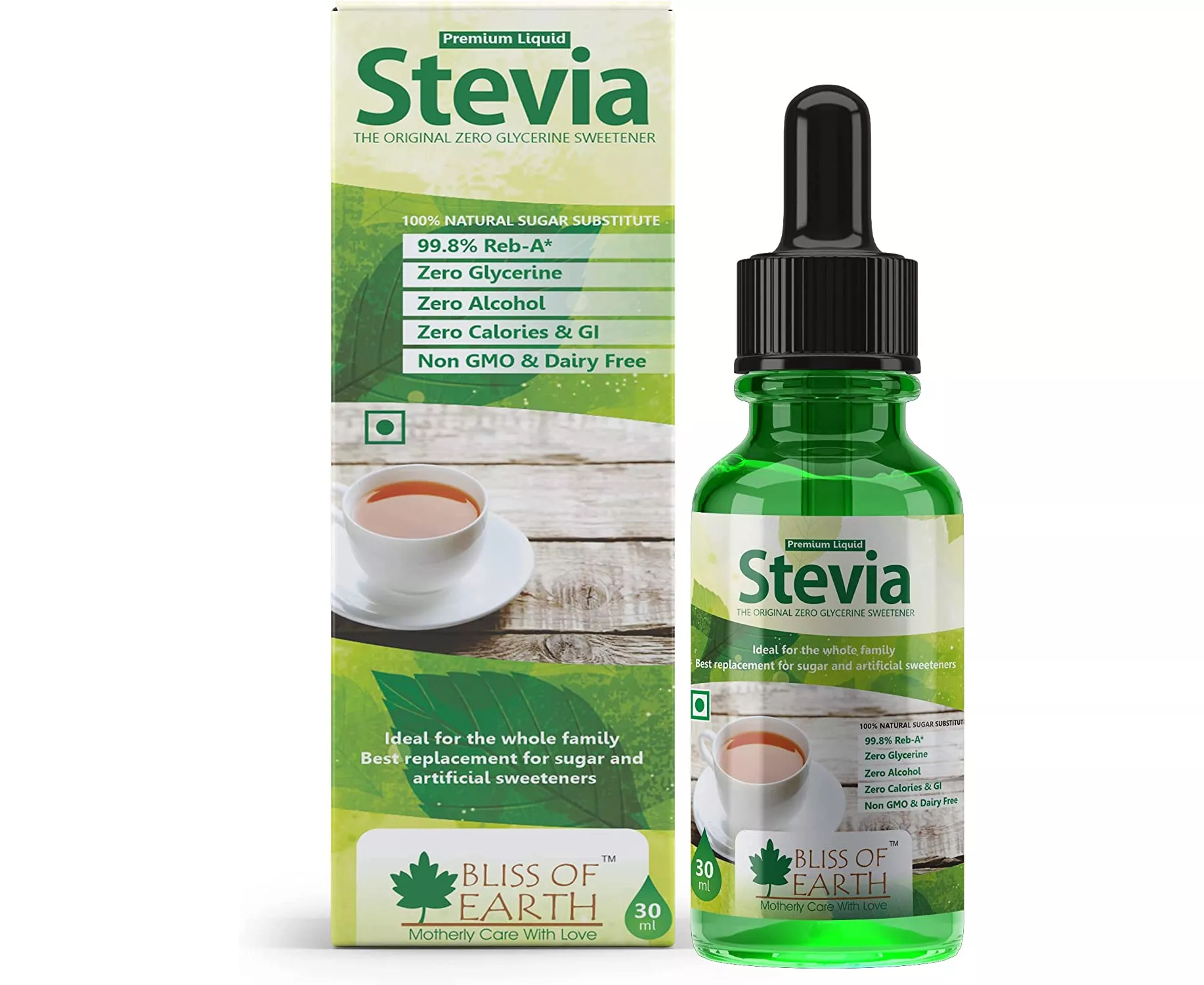 Stevia is the sweetest herb mother Earth has to offer and it’s popularity is growing around the world as more and more of us search for ways to improve our diet and support our health. Presenting Bliss of Earth liquid stevia which is the original glycerin free & sucralose free sweetener containing 99.8% REB-A. It’s a wonderful way to add this sweet supplement to beverages and baked goods, and a little goes a long way. 100% natural alternative to sugar and artificial sweeteners. Our stevia liquid can be used to sweeten anything you like, from tea and coffee to breakfast cereals/porridge, natural yogurt, smoothies, grapefruit, etc. It can also be used in home baking. Have fun and experiment! Because its a liquid it is much easier to use, simply add a drop at a time until you reach the desired taste. 4-6 drops roughly equals 1tsp of sugar. However tastes can vary so we suggest that if you are new to using stevia you should add 1 drop at a time until you reach your desired sweetness. Our liquid stevia is a fantastic healthy alternative as it has no calories, no carbs, doesn’t affect tooth decay, doesn’t have any nasty side effects, and therefore is great for people on sugar restricted diet.