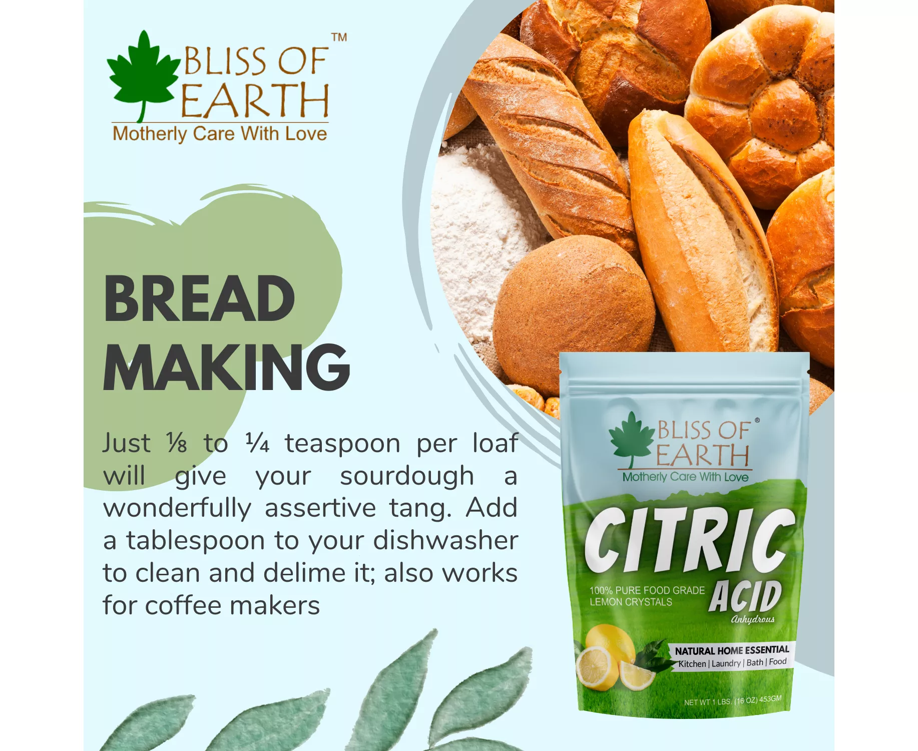 • CITRIC ACID POWDER FOR CLEANING: Bliss of Earth Citric acid powder is an effective cleaning agent and descaler for water appliances such as coffee machines, and water boiler, rice cookers