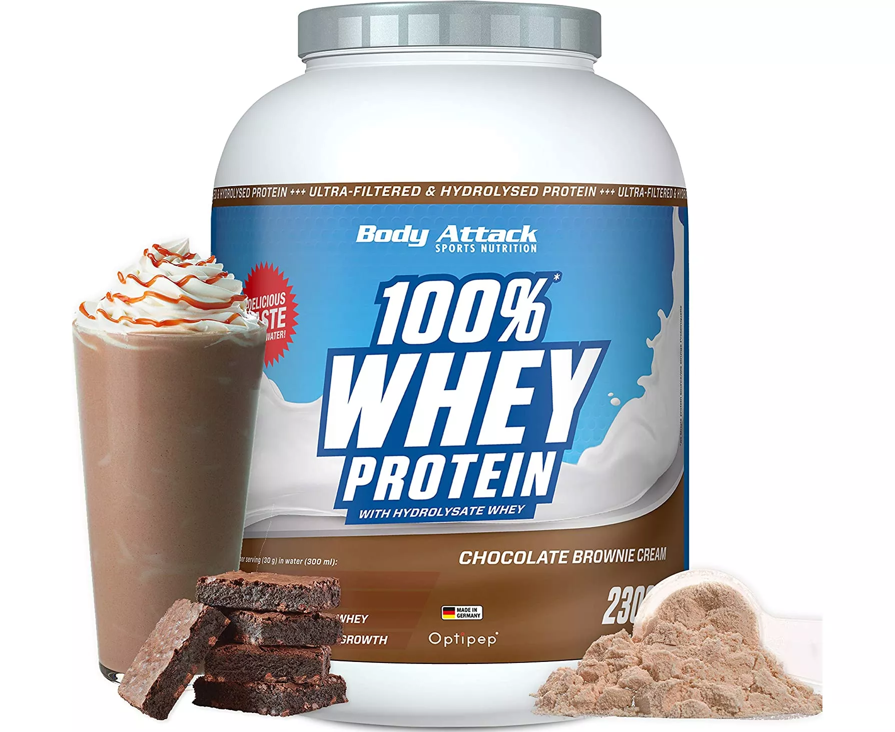 Body Attack 100% whey protein boost your muscle growth. the high-quality whey protein consists of ultra-filtered pure whey protein concentrate and hydrolysate. the high BCAA content and the rich protein content boost muscle growth