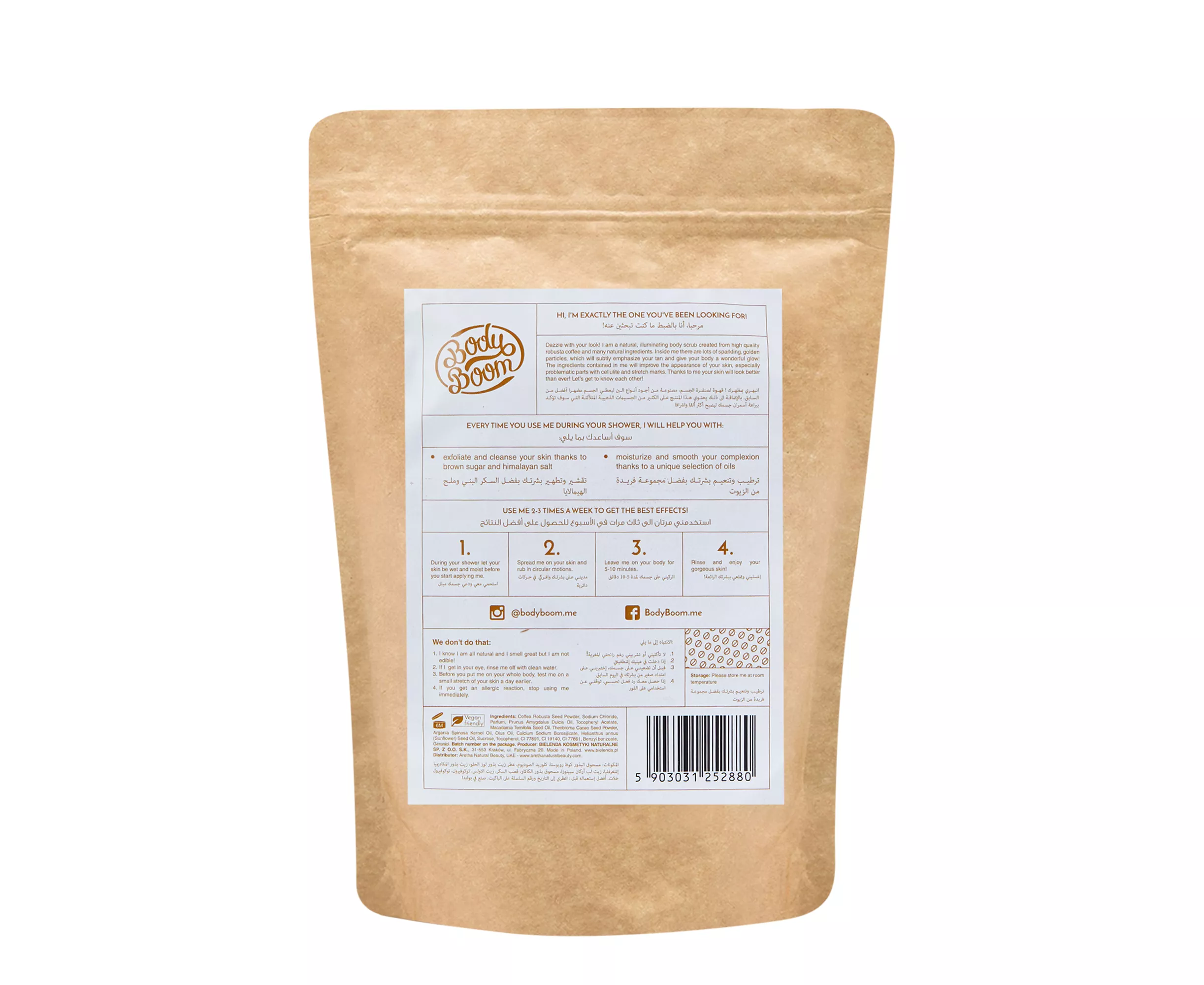 Ain't nobody got time for cellulite. And with Body Boom's Coffee Body Scrub, you won't even be worried about it. This scrub is made from the best coffee and natural ingredients like argan oil and Himalayan salt. It helps improve blood circulation, smoothes your skin and reduces stretch marks. Active charcoal detoxifies your skin. Ain't nobody got time for cellulite. And with Body Boom's Coffee Body Scrub, you won't even be worried about it. This scrub is made from the best coffee and natural ingredients like argan oil and Himalayan salt.
