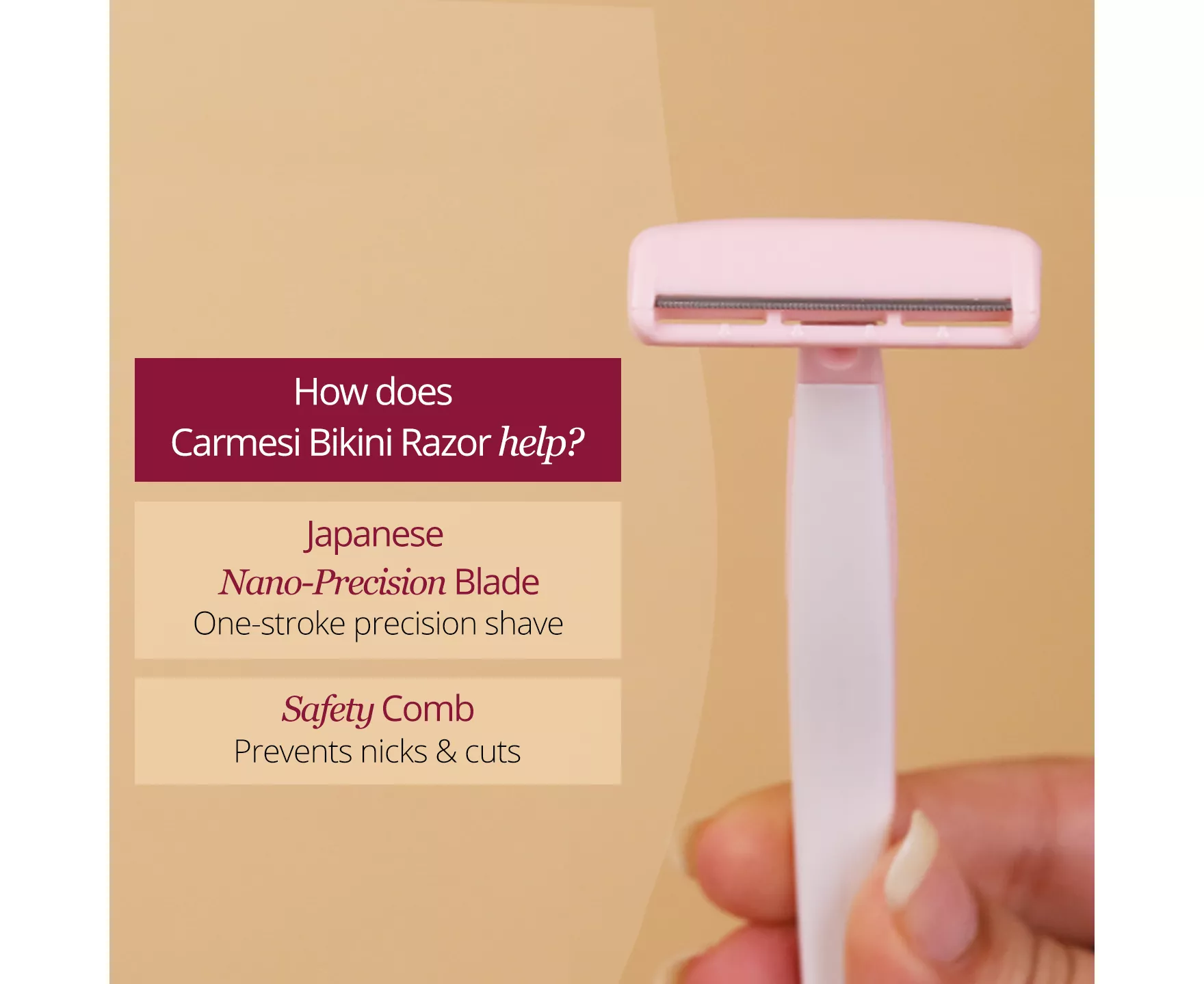 Carmesi Bikini Razor for Women | For Irritation-Free Shaving of Bikini Line | Japanese Nano-Precision Blade & Safety Comb | No Cuts | Safe & Hygienic | Pack of 1